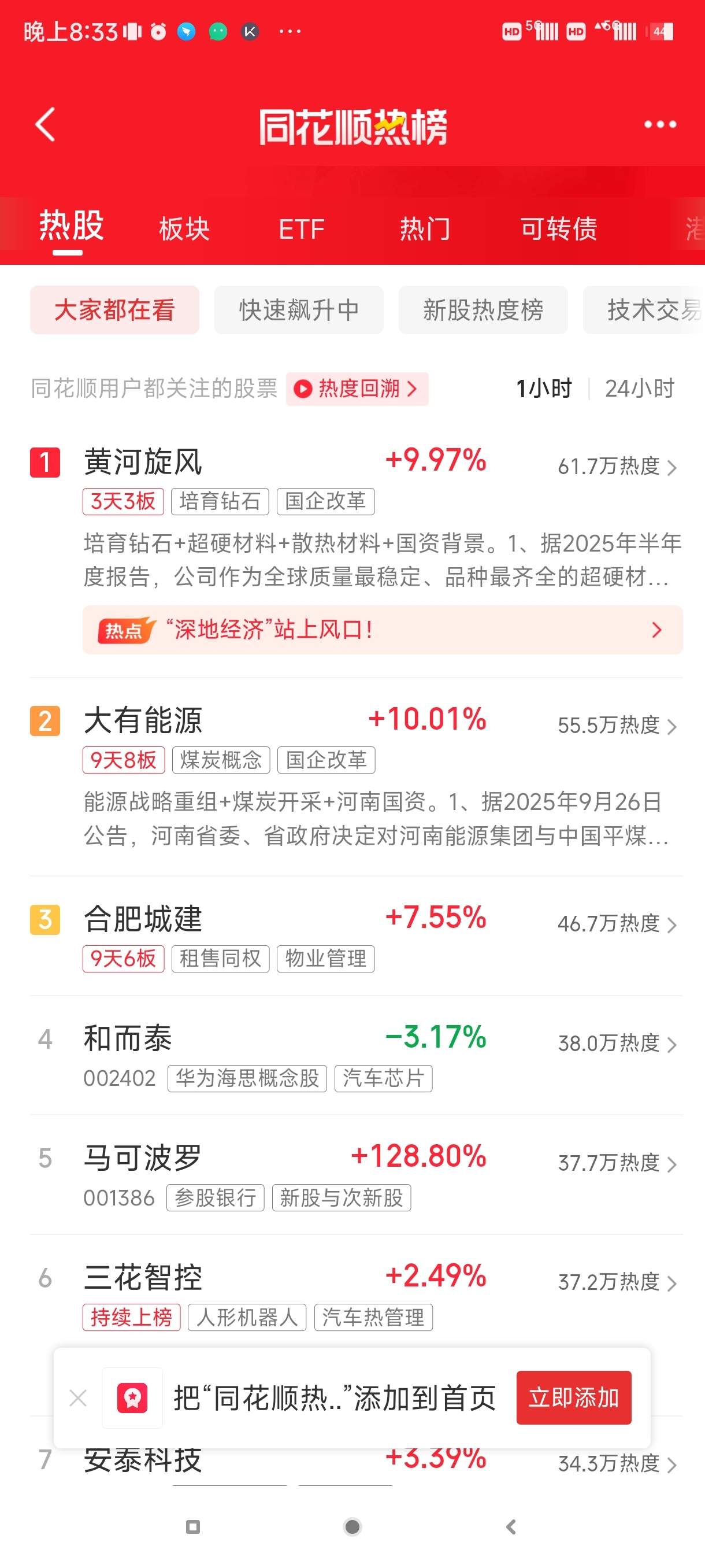 $和而泰(SZ002402)$ 看看同花顺人气,第四了