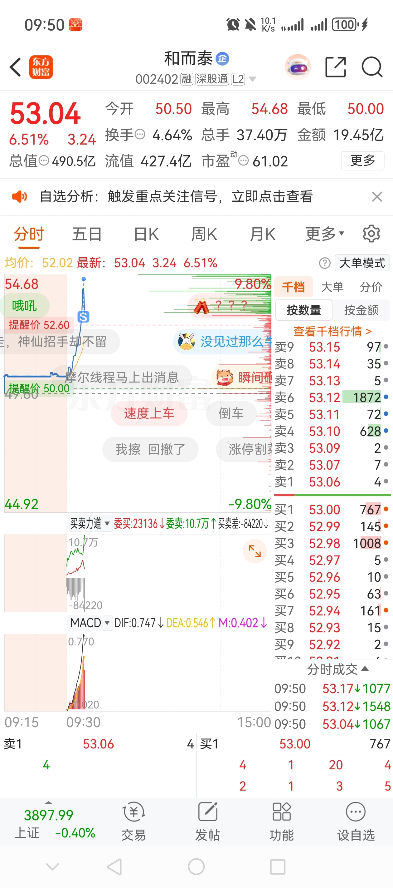 $和而泰(SZ002402)$ 我先撤了,这周收官~