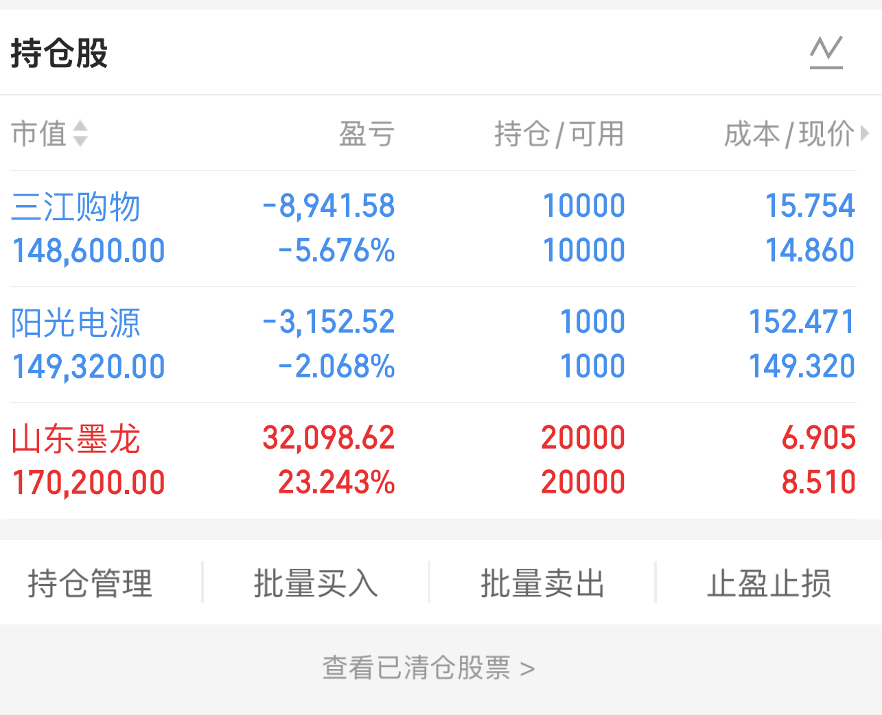 目前手上持有情况: