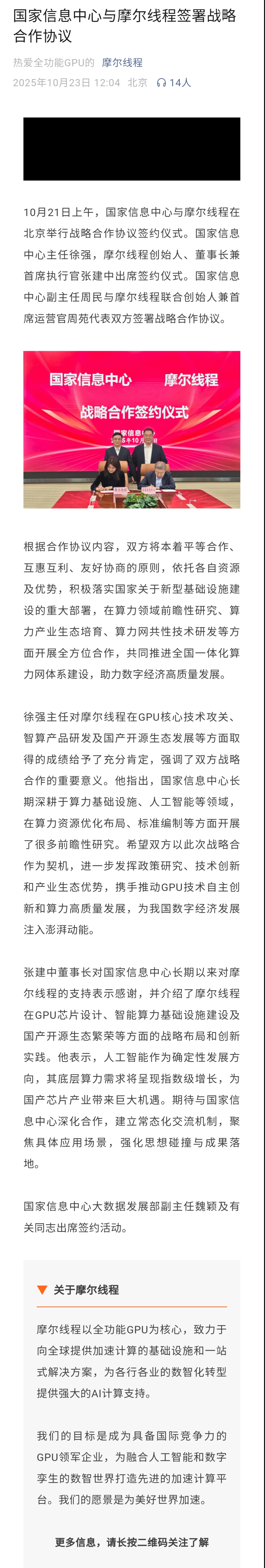 $和而泰(SZ002402)$ 国家信息中心与摩尔线程智能科技(北京)股份有限公司于2025年10月21日签署战略合作协议!