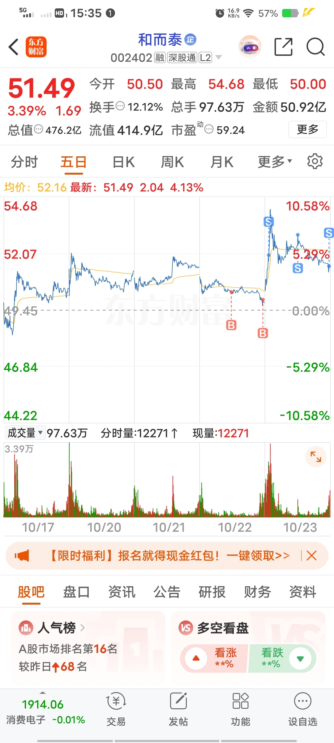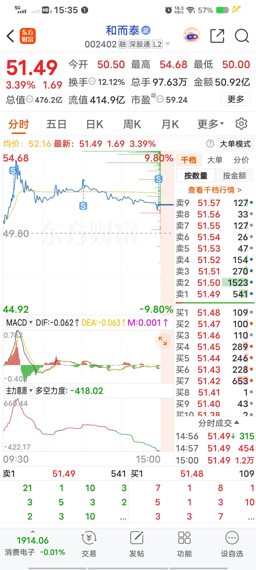 $和而泰(SZ002402)$ 想套我?没门。只吃确定涨的一天,虽然没卖在最高点,起码是今天活着出来了,缩量行情还是大盘子票,能有个屁的连涨行情,各个票子涨一天跌一天,谁格局谁兲,套这么多散户量化进来,机构出货出爽了吧?