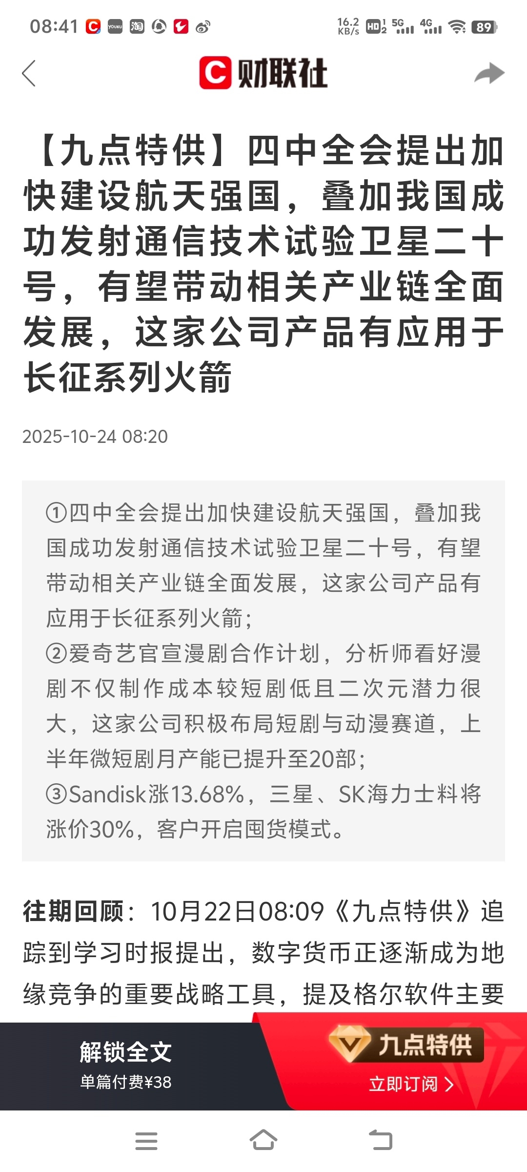 和而泰旗下子公司铖昌科技的产品在航天领域有广泛应用,其相控阵T/R芯片已批量用于星载、地面、机载相控阵雷达及卫星通信等领域,与报道中提及的航天产业链、长征系列火箭等存在技术和业务上的关联。随着四中全会提出加快建设航天强国,以及我国航天发射活动的推进,和而泰在航天电子领域的布局有望受益于行业发展红利,进而对其股票表现产生积极影响。
