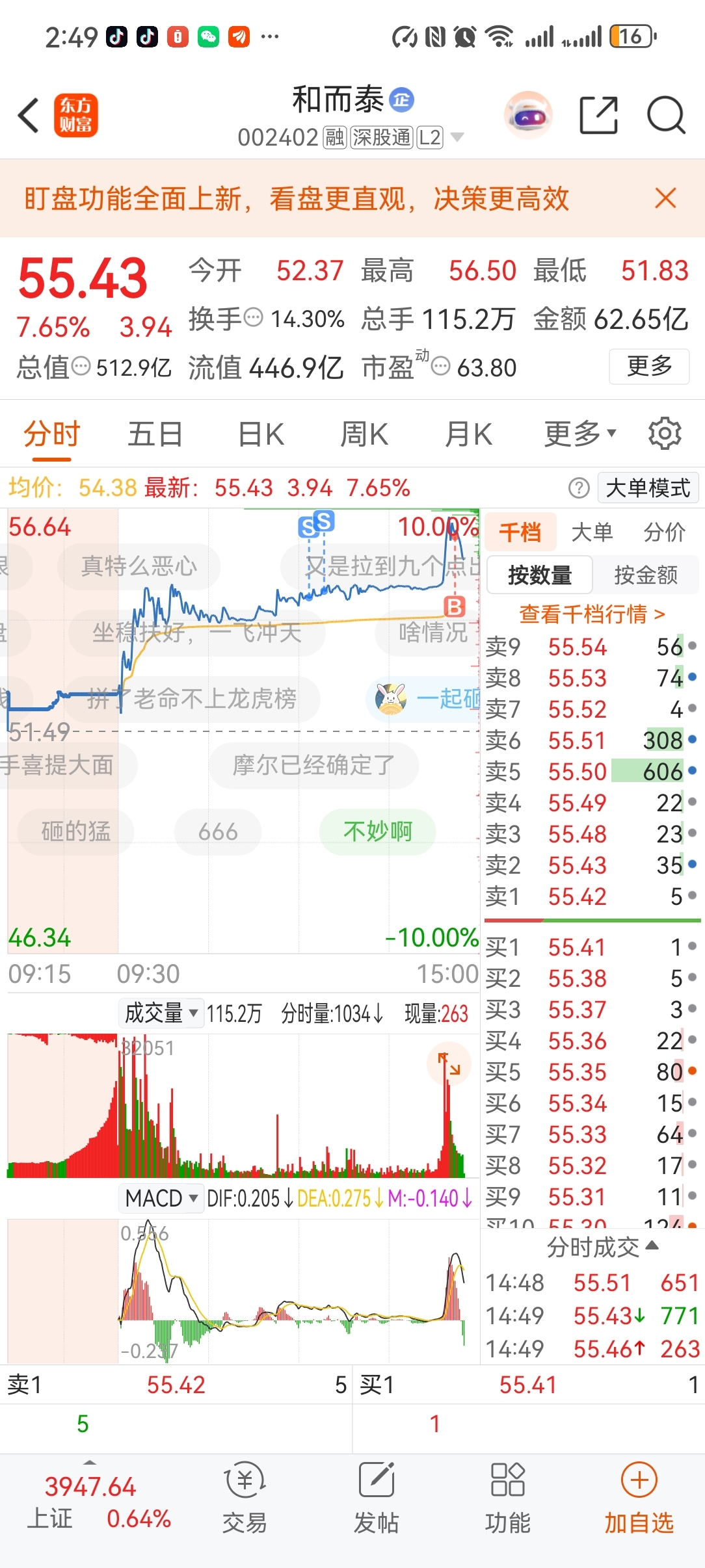$和而泰(SZ002402)$ 挂山顶上了