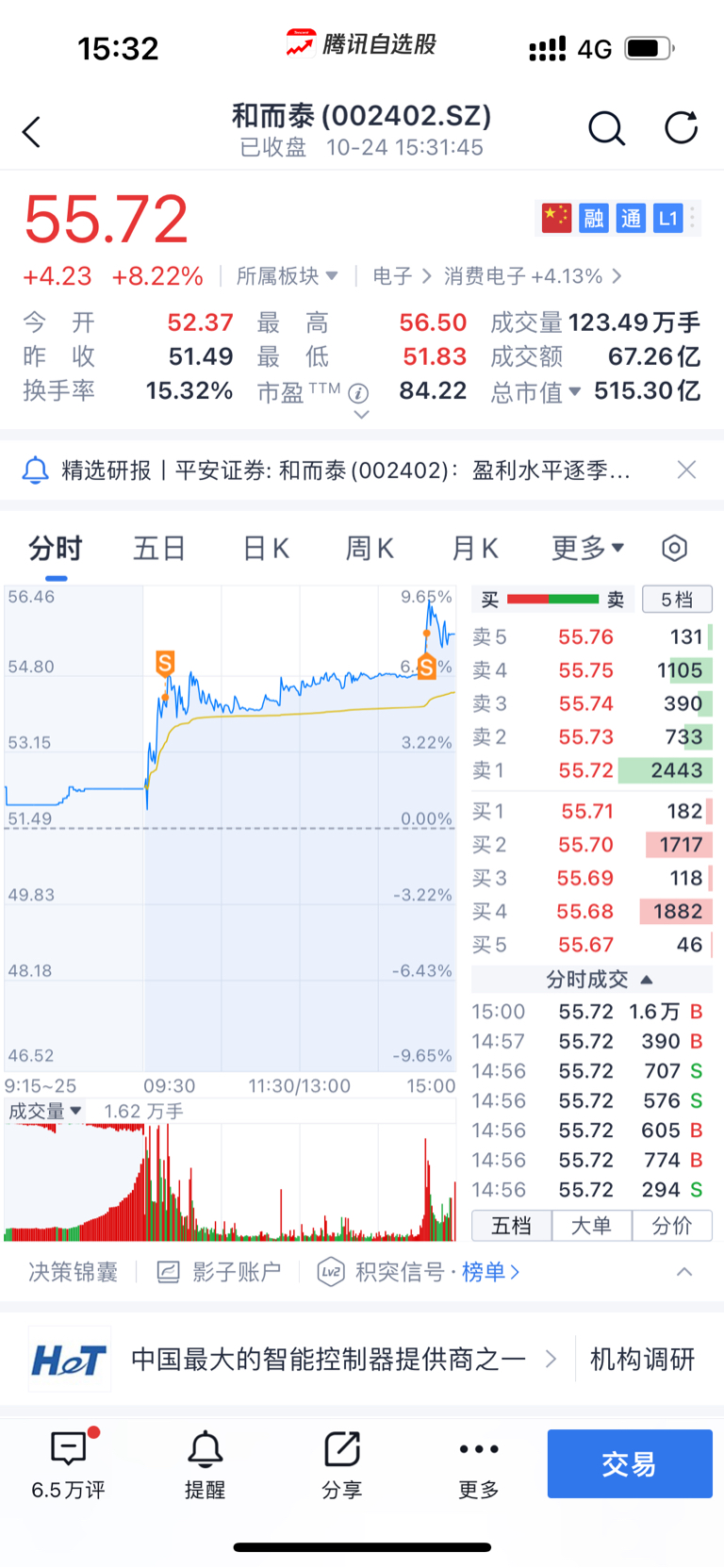 和而泰前几天底部埋伏,今天顺势出点一层仓,后面每次新高将会陆续减仓,今天摩尔板块