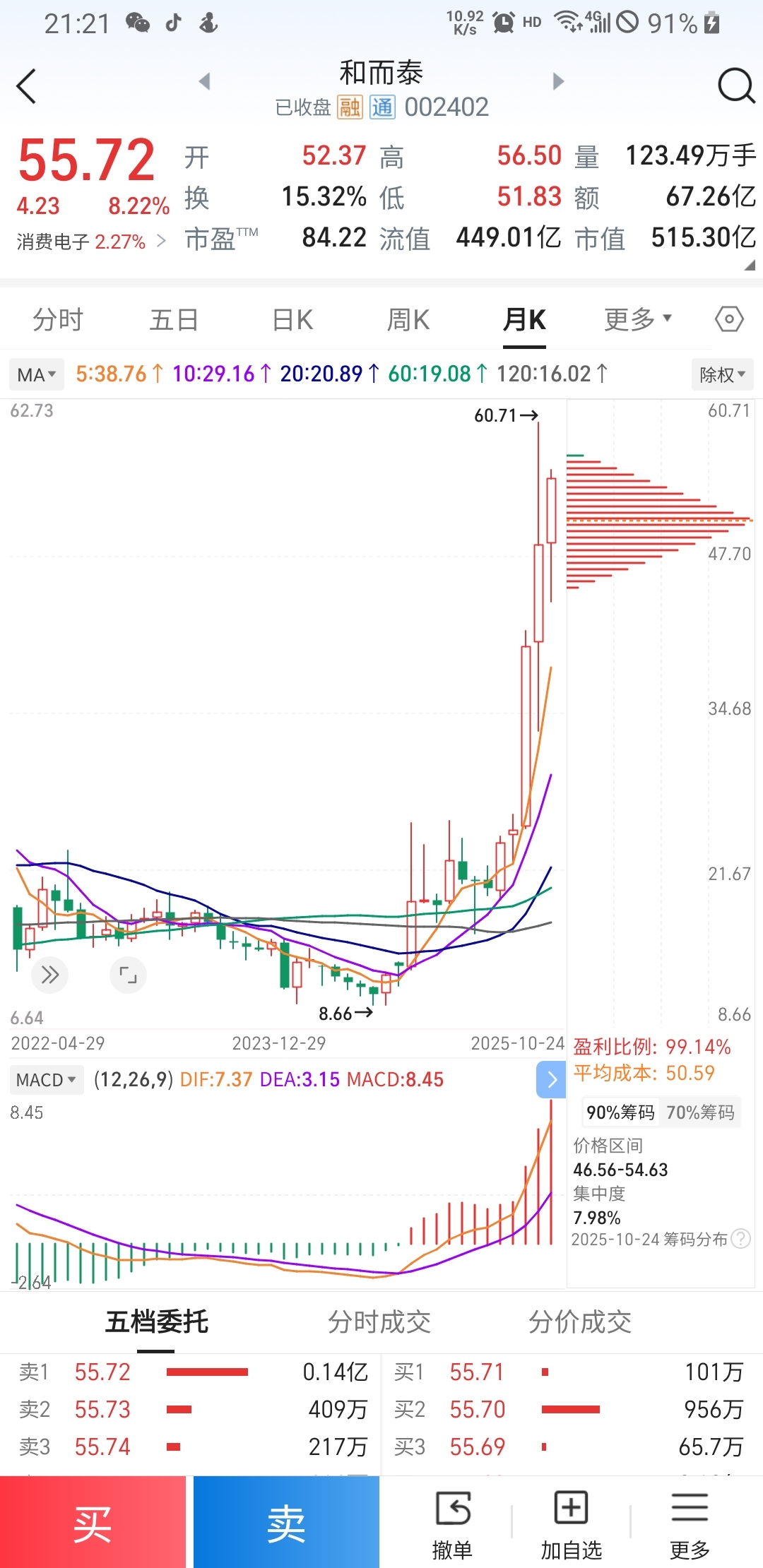 和而泰有一个多亿的非流通股现在筹码怎么都上去了……?