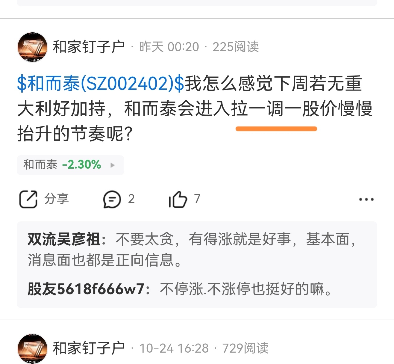 准不准?别问我为什么,持有和而泰238天的时刻关注练就的一种盘感,只是一种感觉!