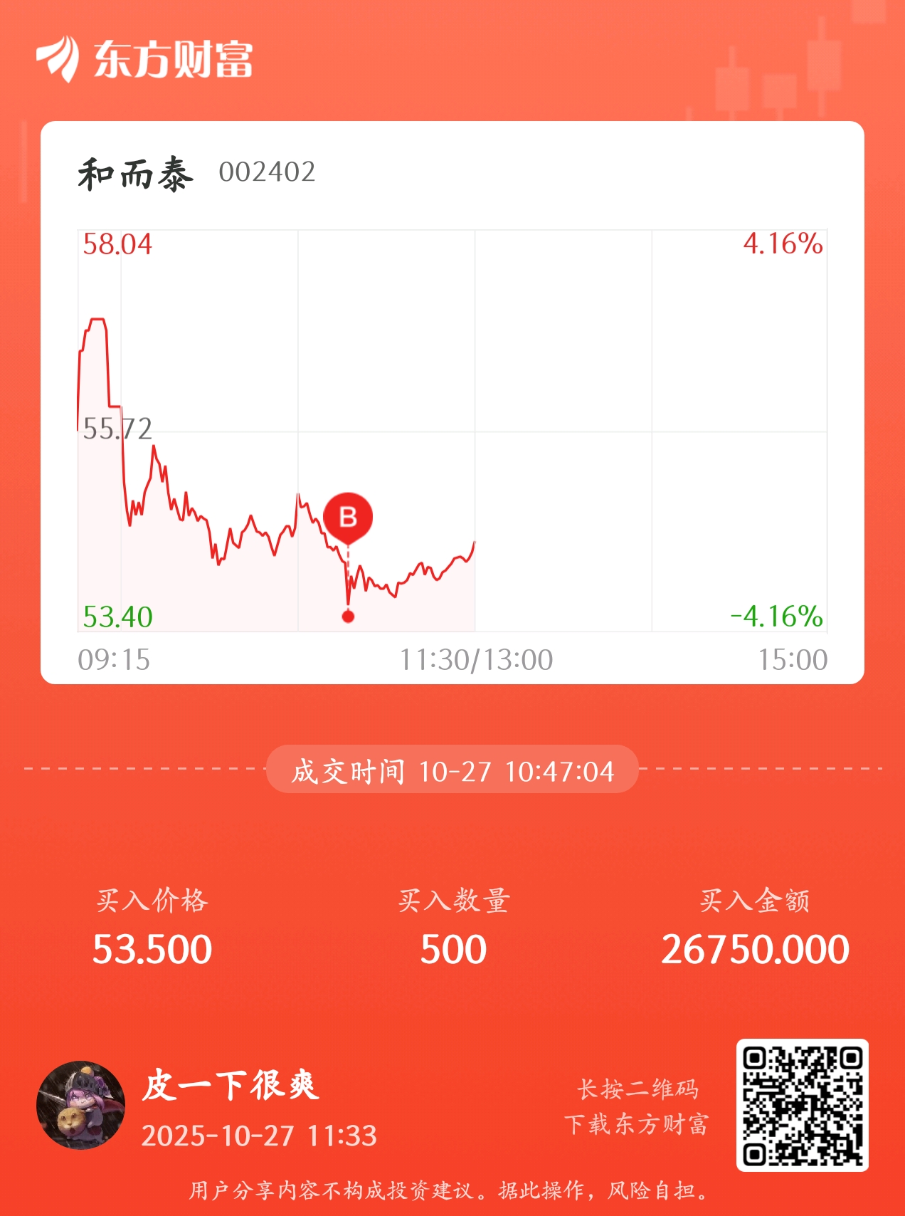 $和而泰(SZ002402)$ 感谢某个水下4个点割肉的老哥