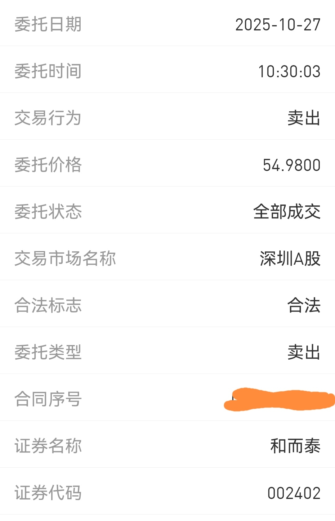 $和而泰(SZ002402)$ 早上集合竞价后,开盘前,老哥给的分析怎么样?万通看涨!大众公用,冲高就卖!和而泰,冲高就卖,水下接!可惜和而泰,没有冲高过程。也不用担心,跌不到哪儿去。老哥54.98,一次性卖出,54.40接回来。操作不是太满意,没有卖到最高点,买也没有买到最低点。梯了0.59元,也算可以。万通发展,星期五买进,就认为今天会反弹。如我所愿。