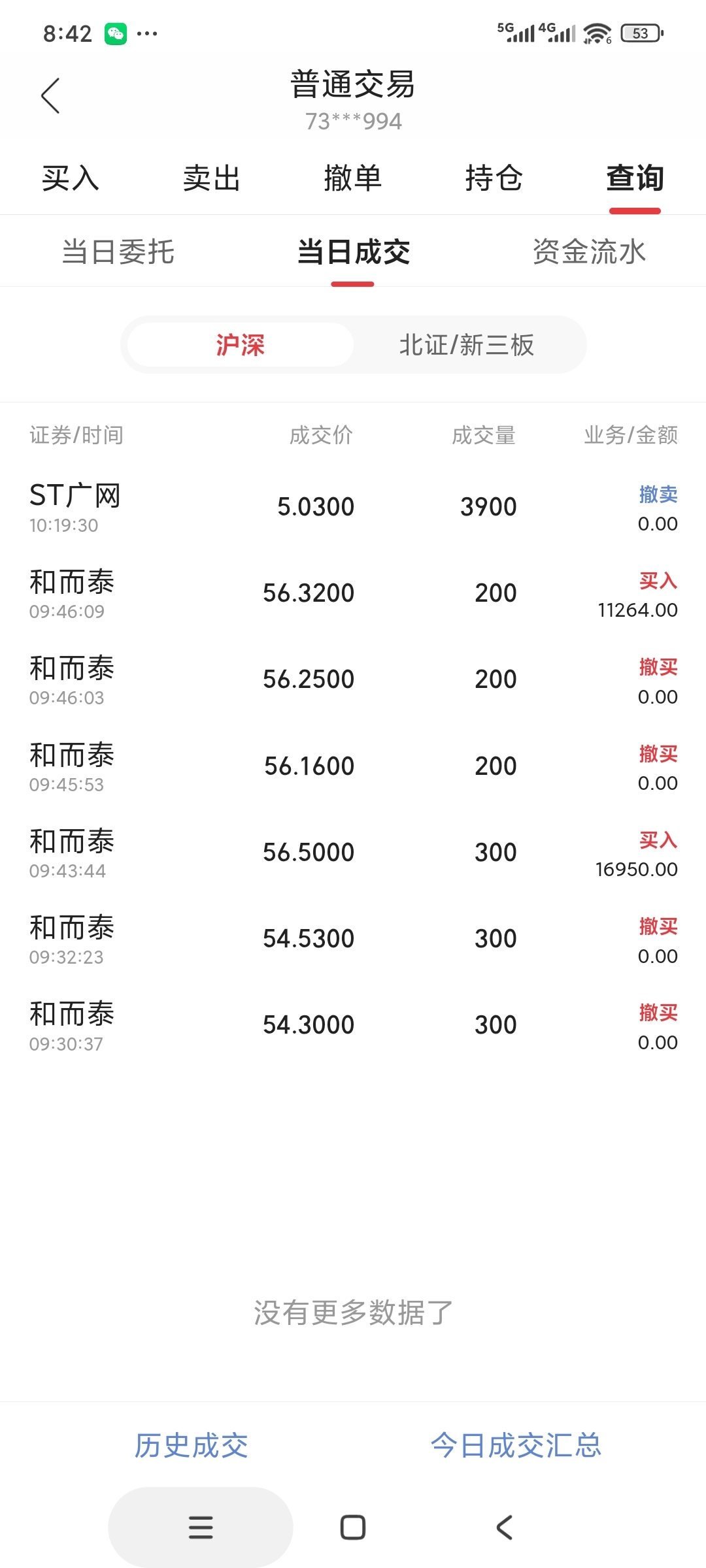 $和而泰(SZ002402)$ 开盘后低点没买着,直接高点56.50和56.32分别买了几手,也不知道对不对。
