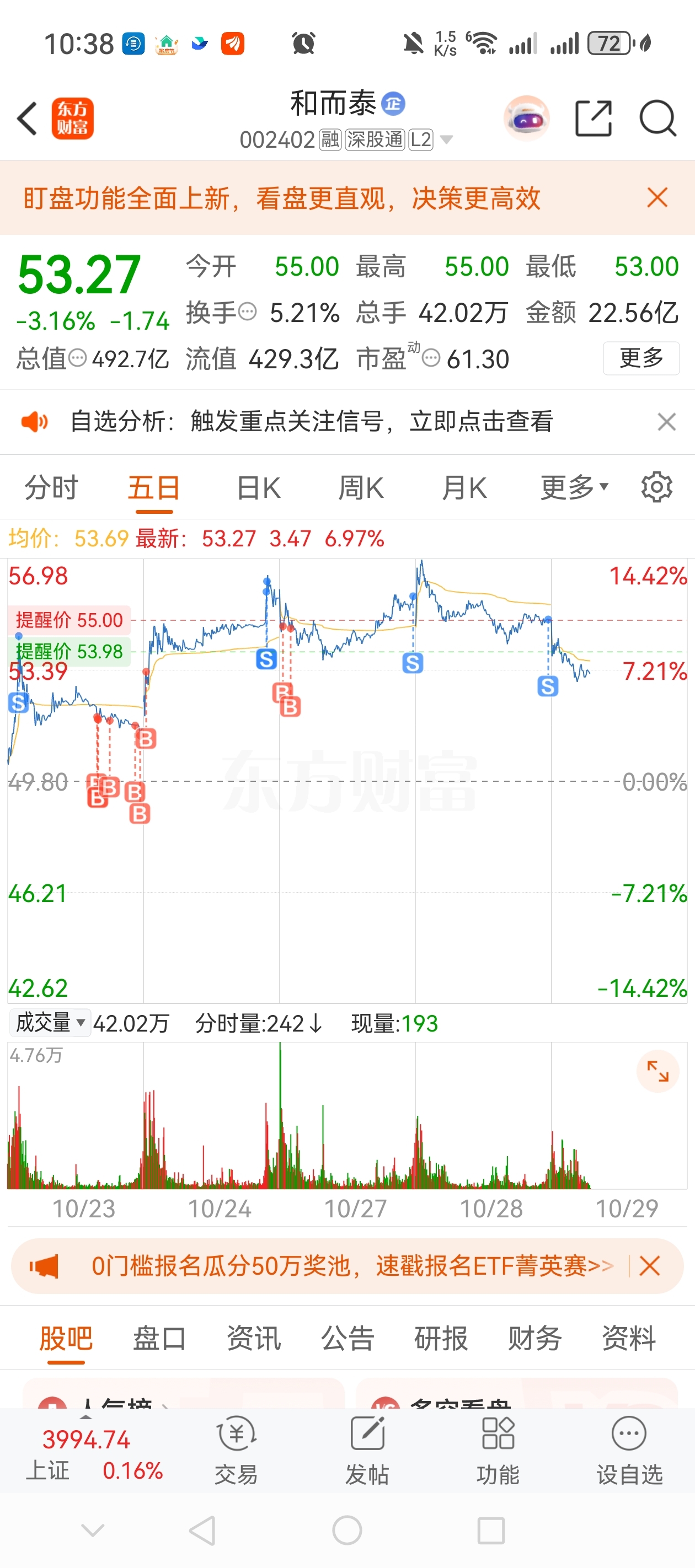 $和而泰(SZ002402)$ 昨天割得明智,暂时看空
