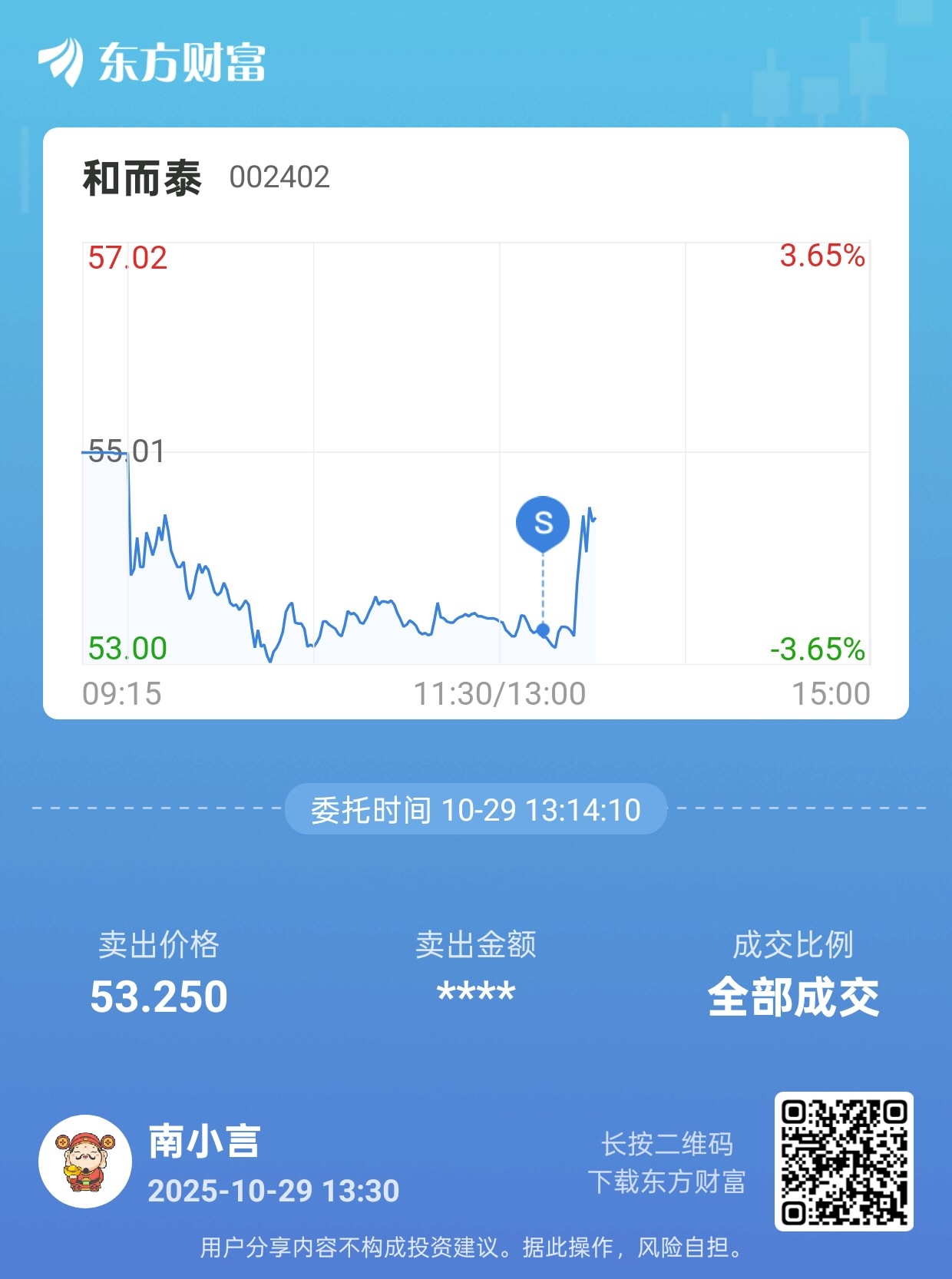 $和而泰(SZ002402)$  就为了我这三瓜两枣?