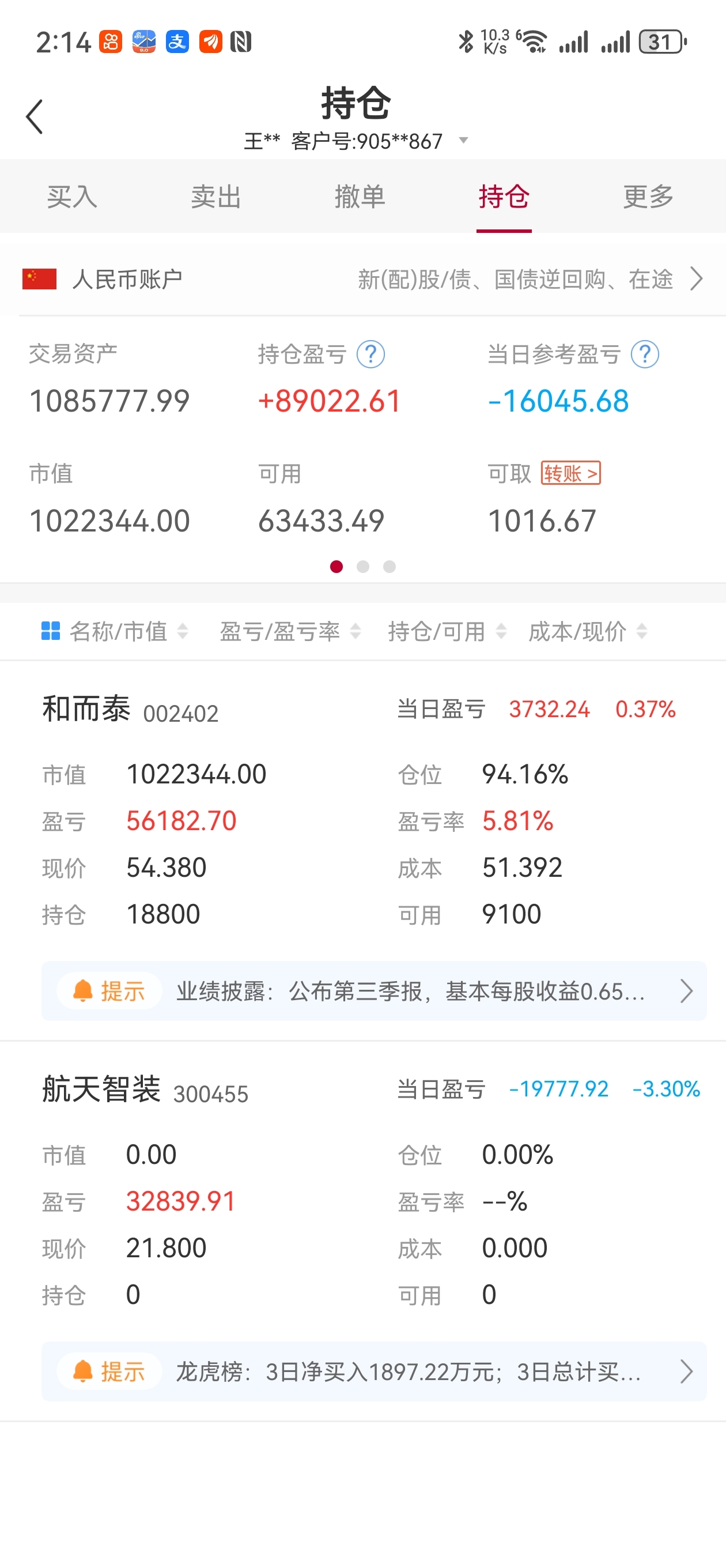 $和而泰(SZ002402)$ 去航天智装玩了两天,今天加仓继续干