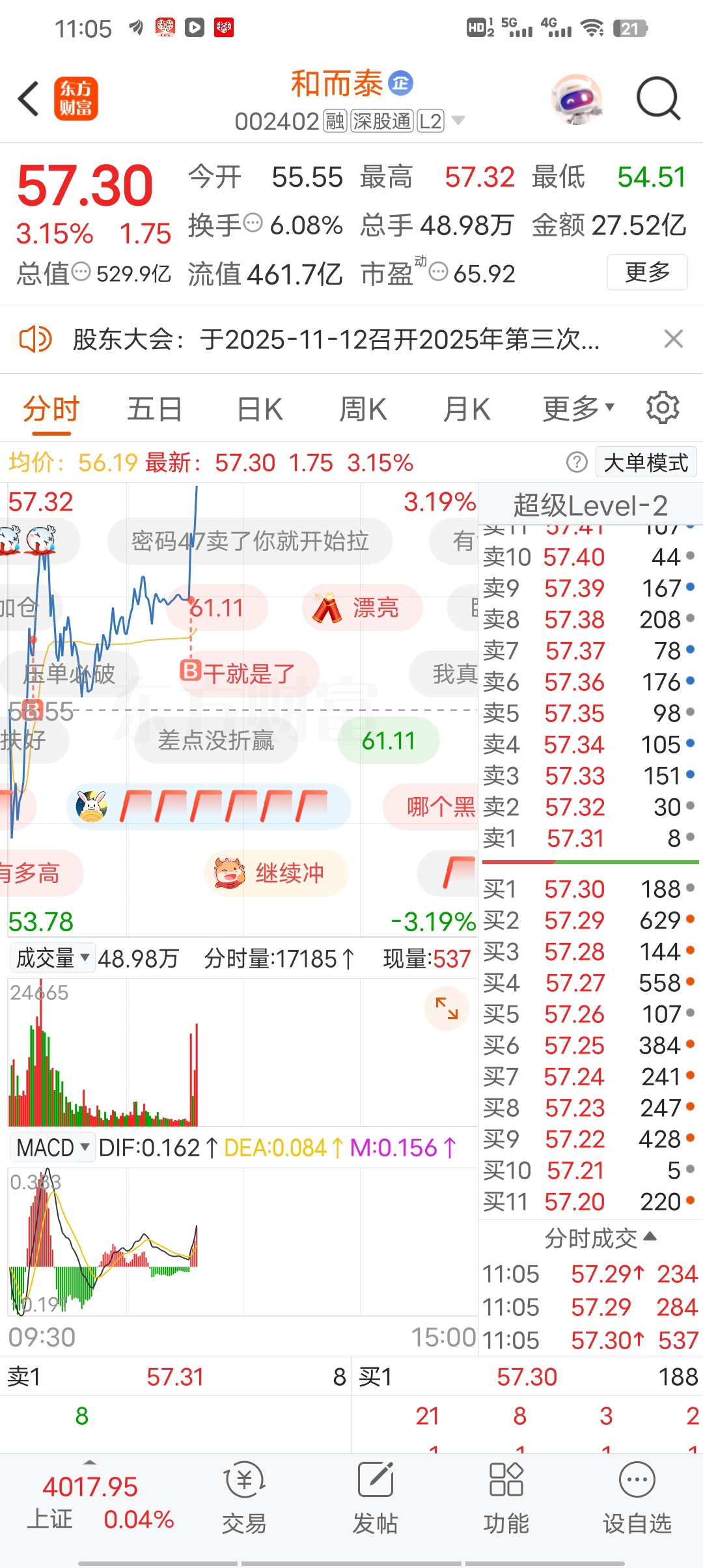 $和而泰(SZ002402)$ 是我点的火你们信吗