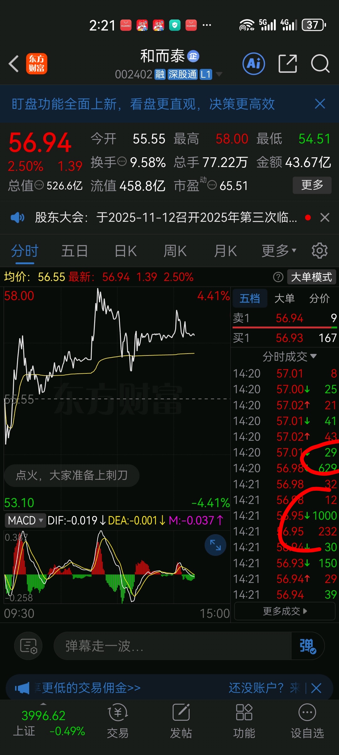 $和而泰(SZ002402)$ 小单拉大单砸,,,还得往下,主力做空强烈