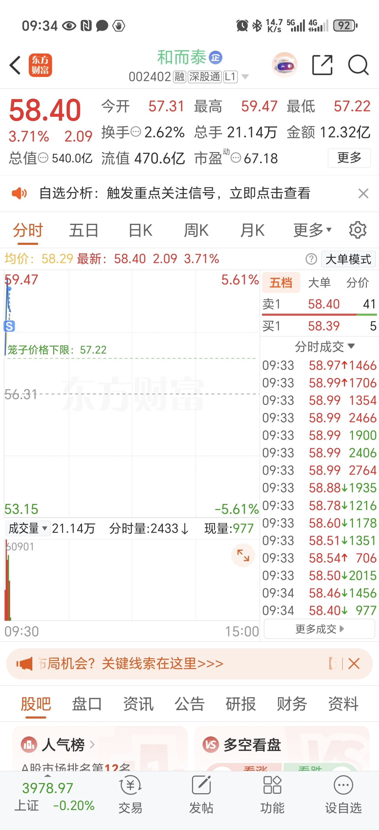 $和而泰(SZ002402)$ 开盘就清说到做到