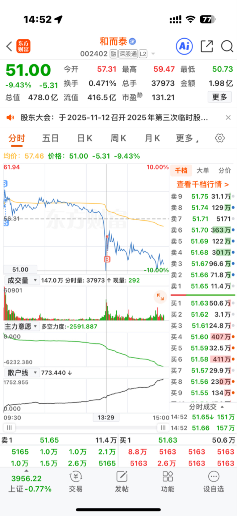 $和而泰(SZ002402)$ 以为是洗盘,没想到是出货,趁我午睡搞偷袭,这个月利润一个下午亏完了,可恶!