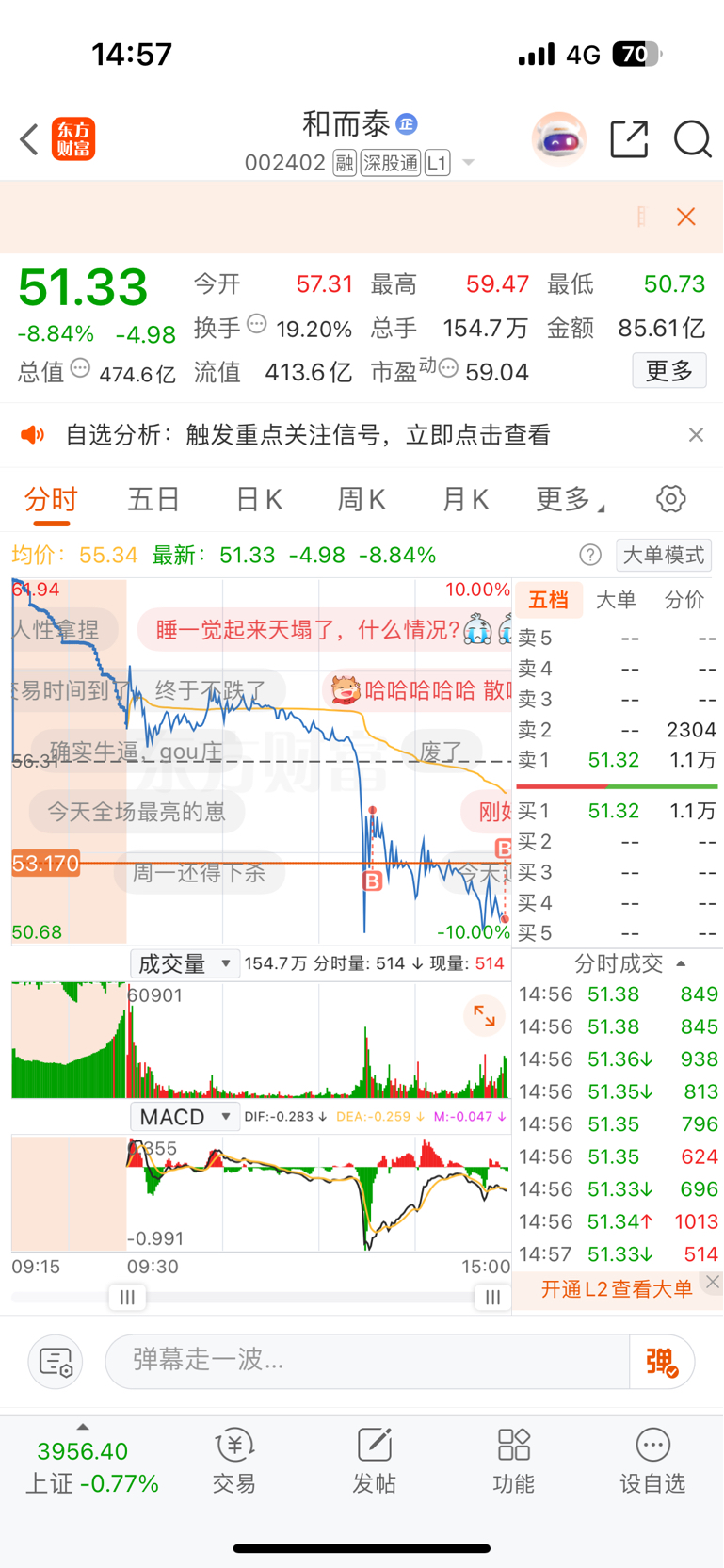 $和而泰(SZ002402)$ 别人恐惧我贪婪