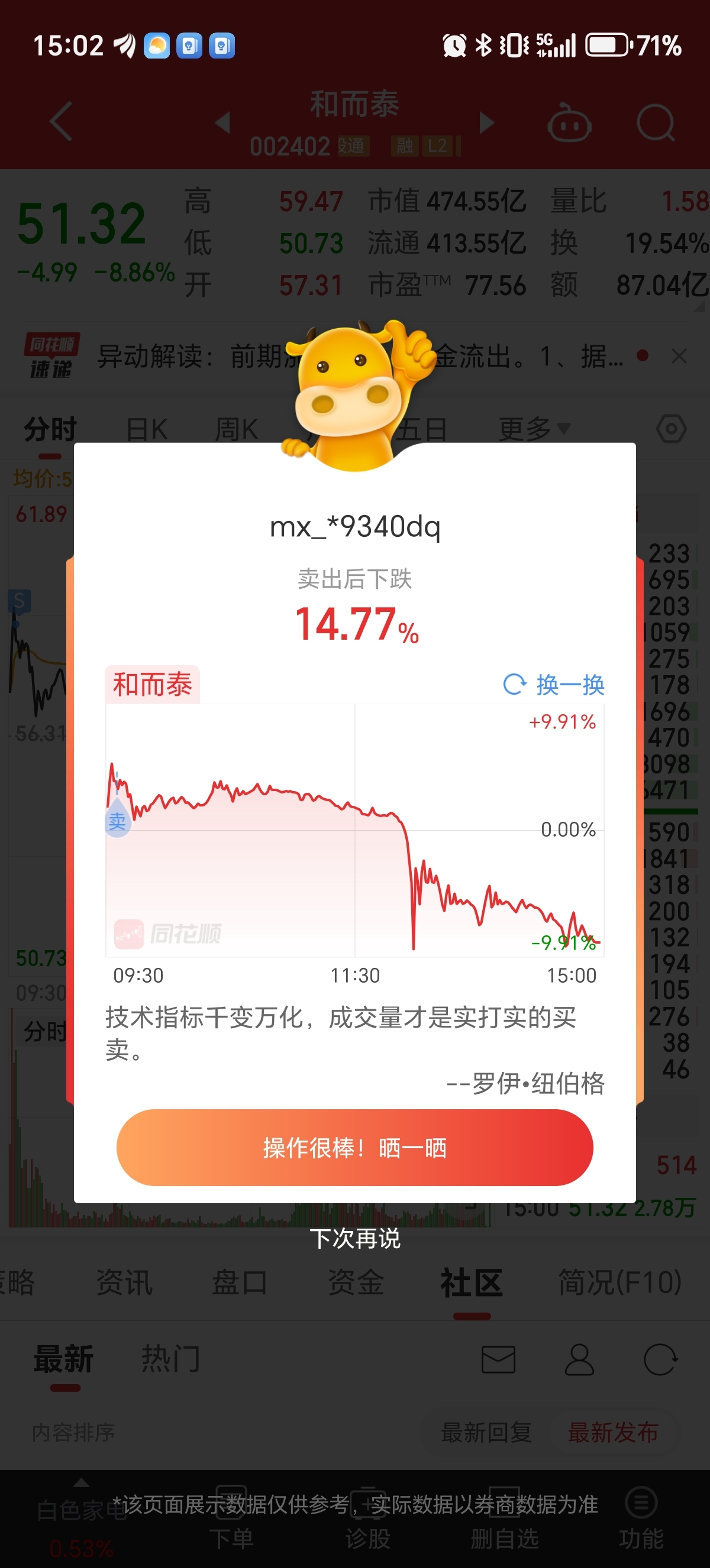 $和而泰(SZ002402)$ 各位下周下跌一定要割肉给我抄底啊。