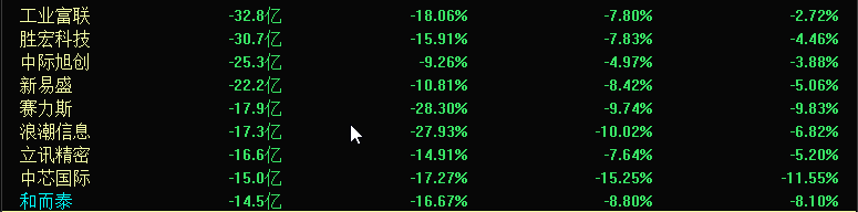 2. 今天下跌的都是前期涨幅较大的或者有影响力的个股