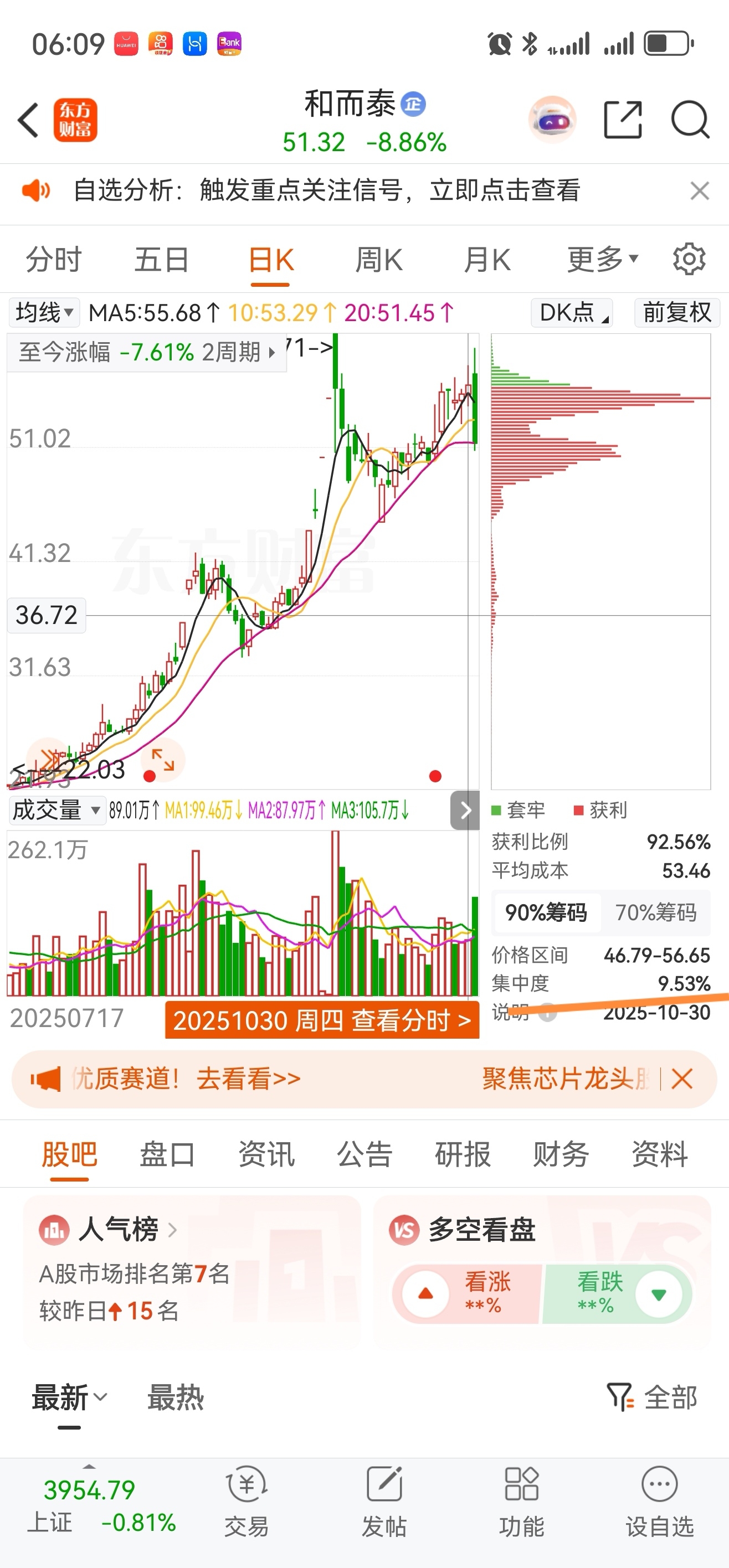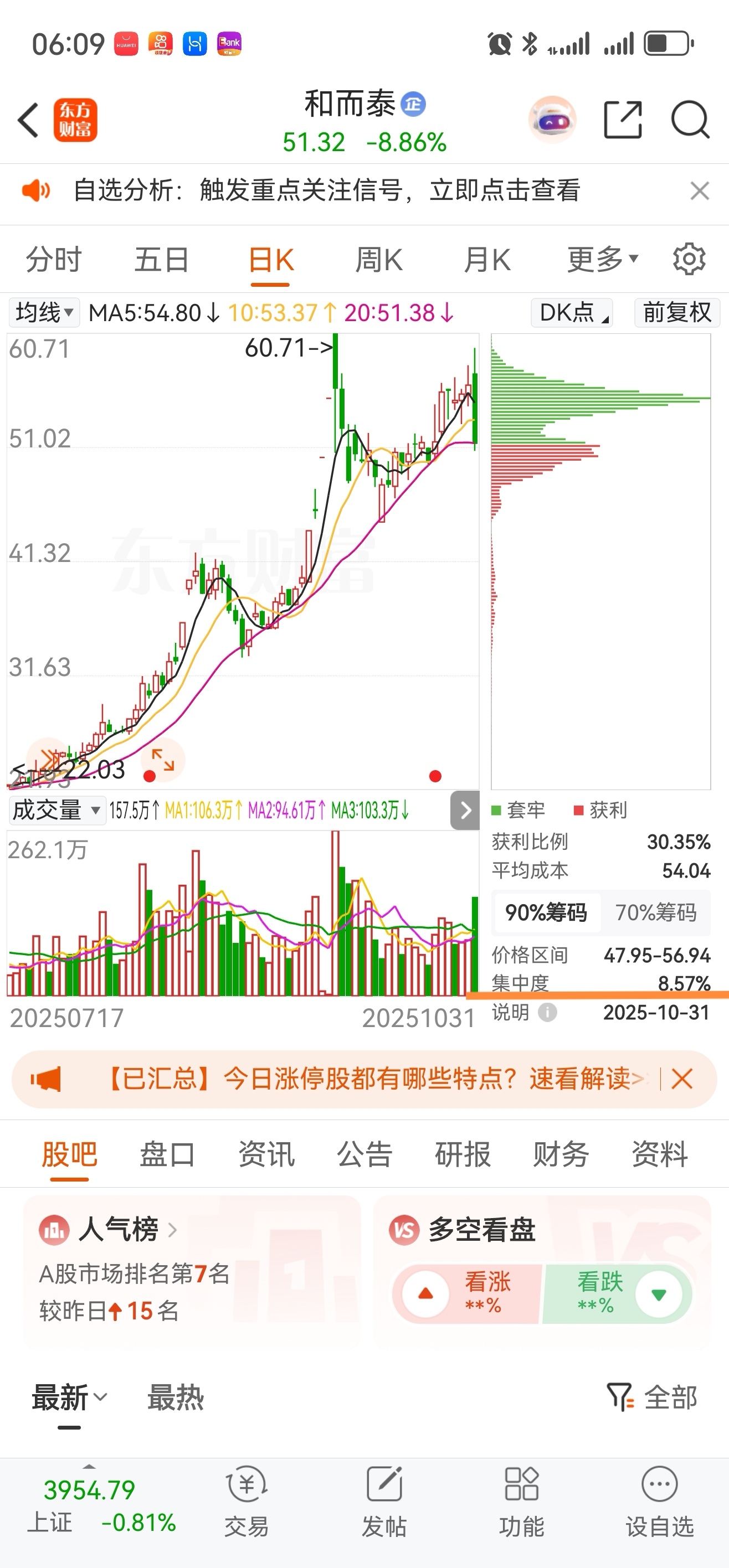 $和而泰(SZ002402)$ 主力吹哨,散户逃跑,70%和90%筹码集中度更高了。呵呵!散户被玩了,筹码峰在此,再下杀所有人都赔钱,我的成本33元,陪呗!谁陪不住谁?看谁先赔!