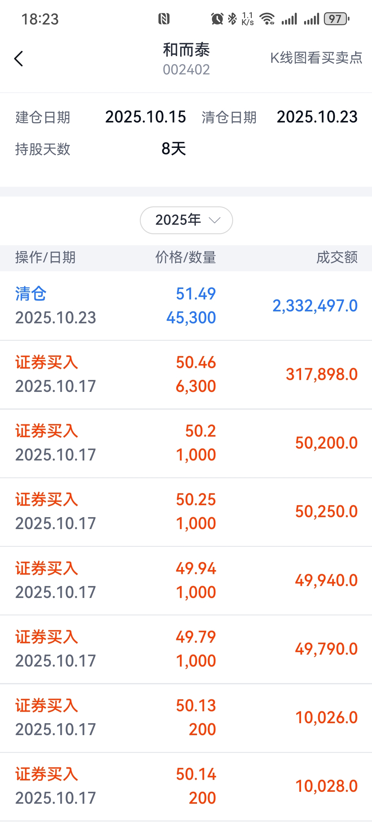 $和而泰(SZ002402)$ 比我前几天清仓价还低一点,搞得我没有那么难受了,大肉没吃上,大面也没赶上。恶心的是进了联美控股,卖的晚了亏了两个点!