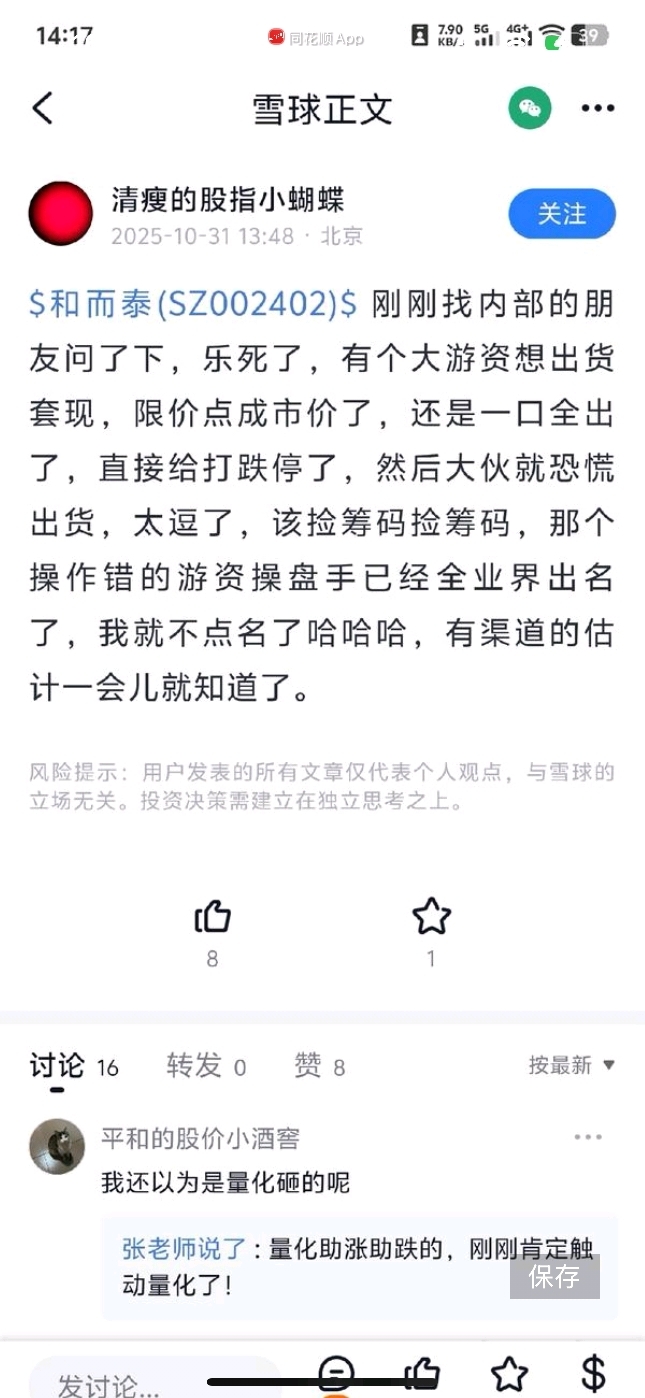 $和而泰(SZ002402)$ 这哥们说的真的假的?