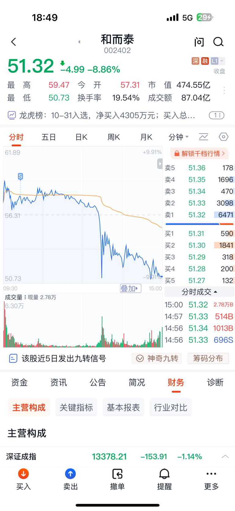 $和而泰(SZ002402)$ 还好跑的快。现在大盘吃人行情~
