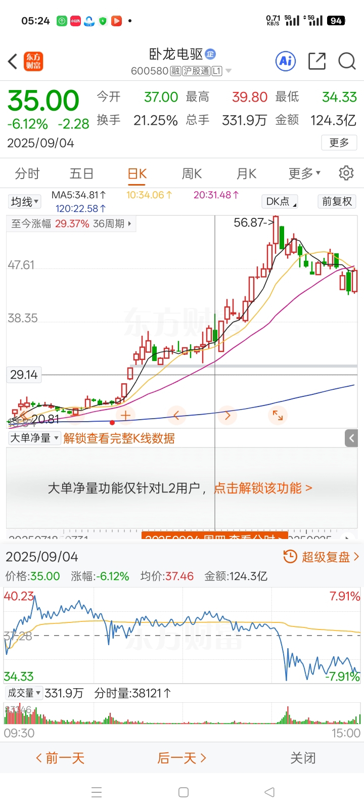 $和而泰(SZ002402)$ 根据一个网友的提示,9月4日卧龙也经历了一字断魂刀。但是在第二天修复了。