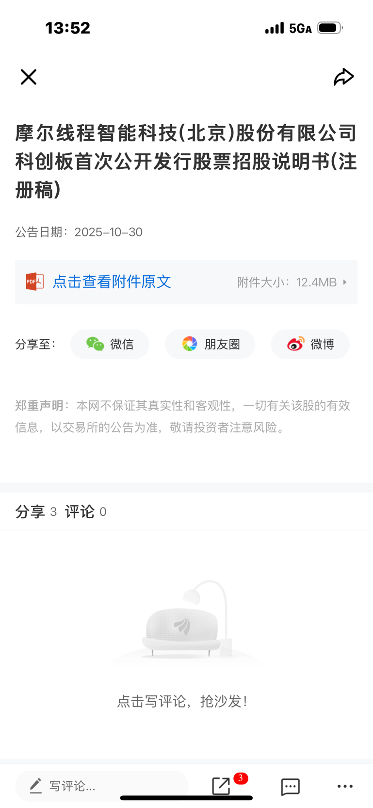 $和而泰(SZ002402)$ 摩尔线程智能科技(北京)股份有限公司科创板首次公开发行股票招股说明书(注册稿)的链接为:https://data.eastmoney.com/notices/detail/A25191/AN202510301772011235.html。