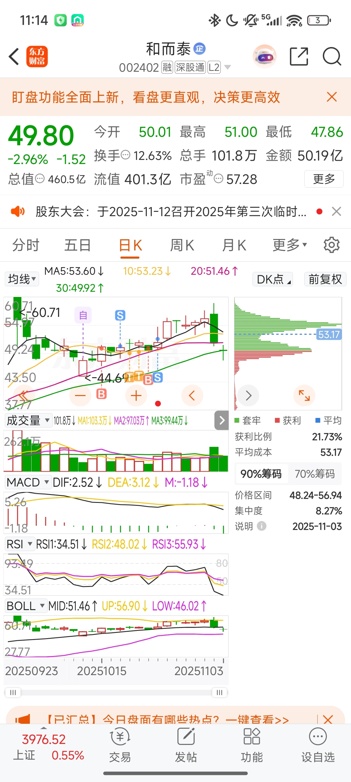 $和而泰(SZ002402)$ 没吃上啥肉,但也没亏到