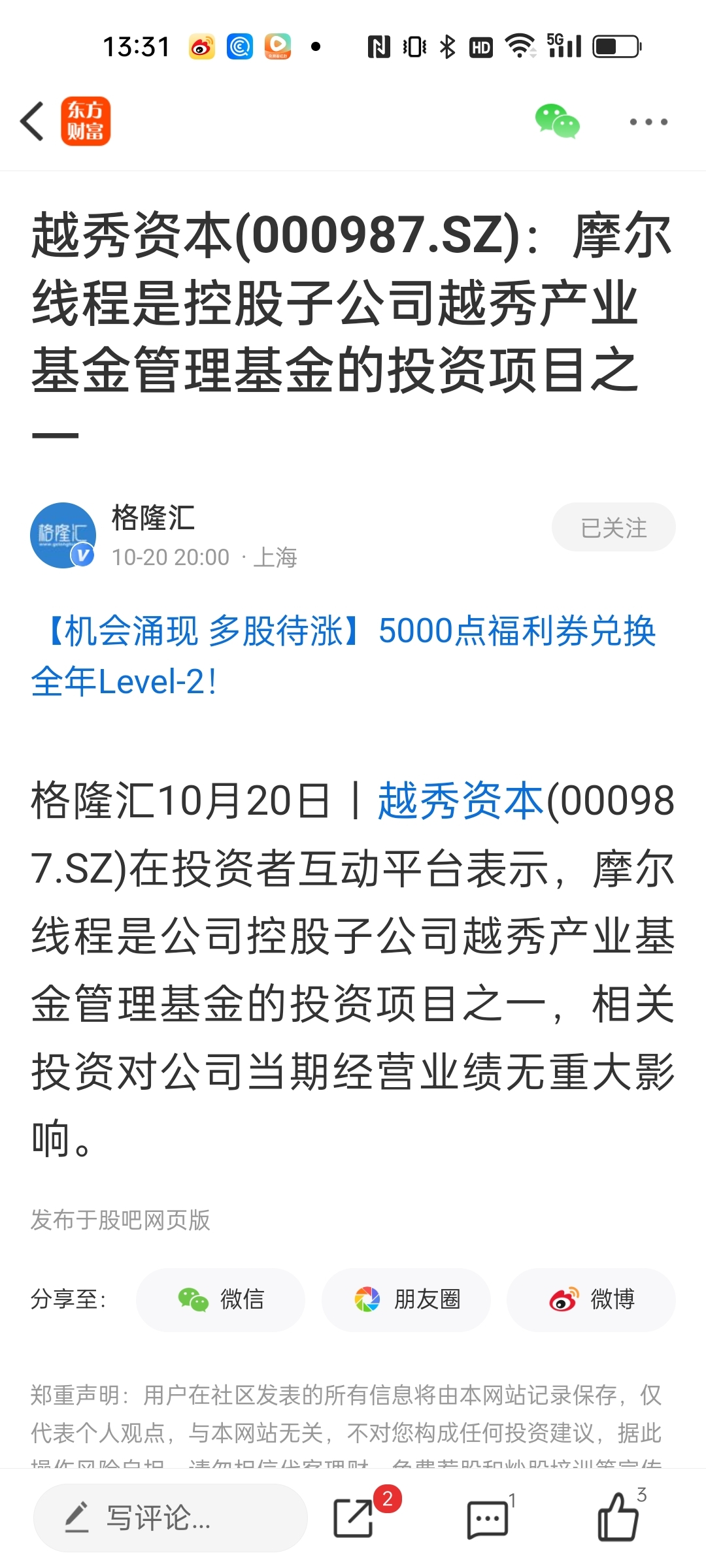 $和而泰(SZ002402)$ 越秀资本真有投资摩尔线程。