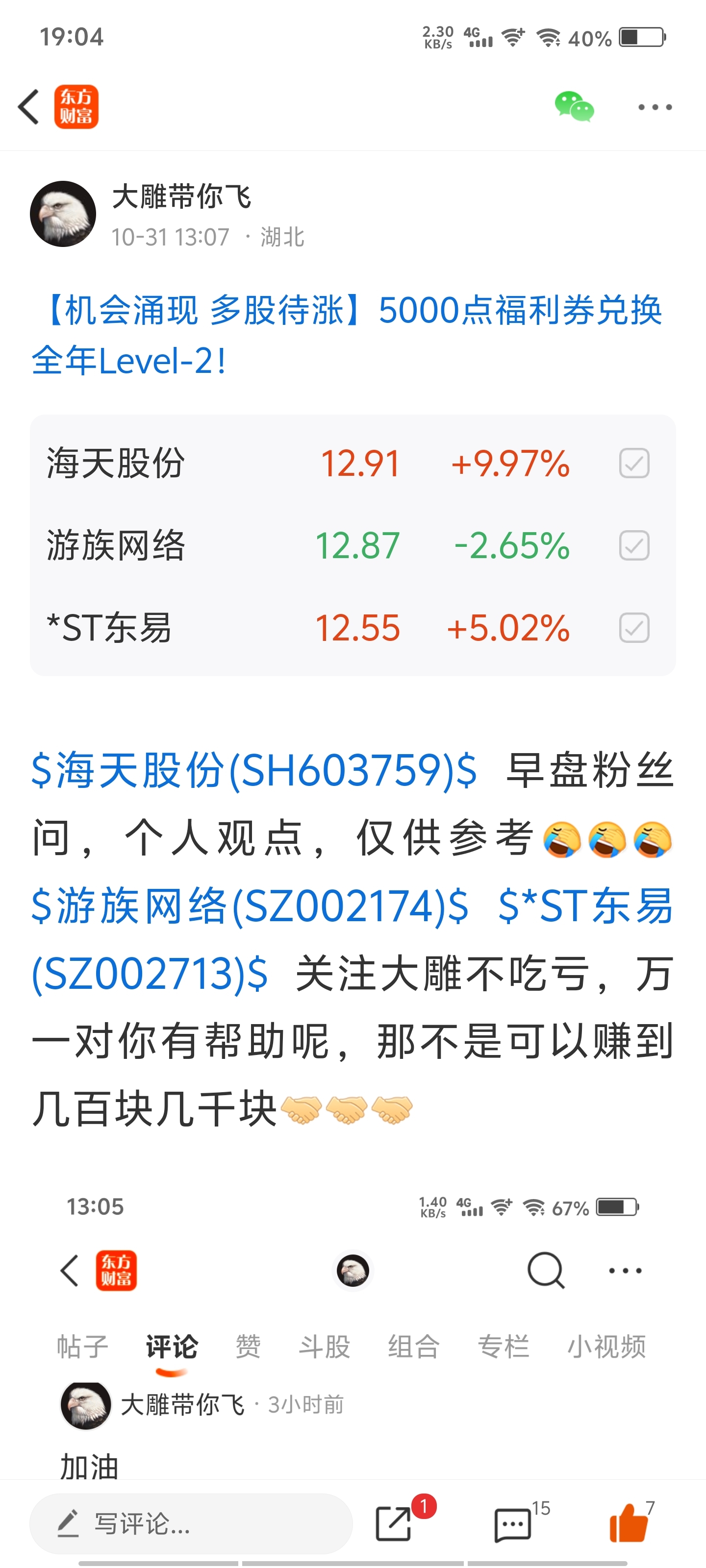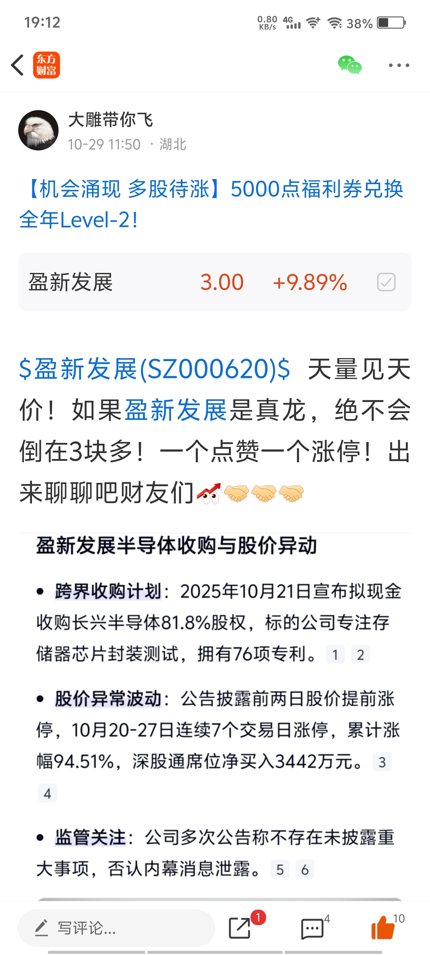 $振德医疗(SH603301)$ $平潭发展(SZ000592)$ $盈新发展(SZ000620)$ 真正的高手总是不断被质疑,而大雕会用雷霆击碎黑暗!从振德医疗到海天股份盈新发展到st东易,我从来没有想过证明我多厉害!我只想证明相信我没有错