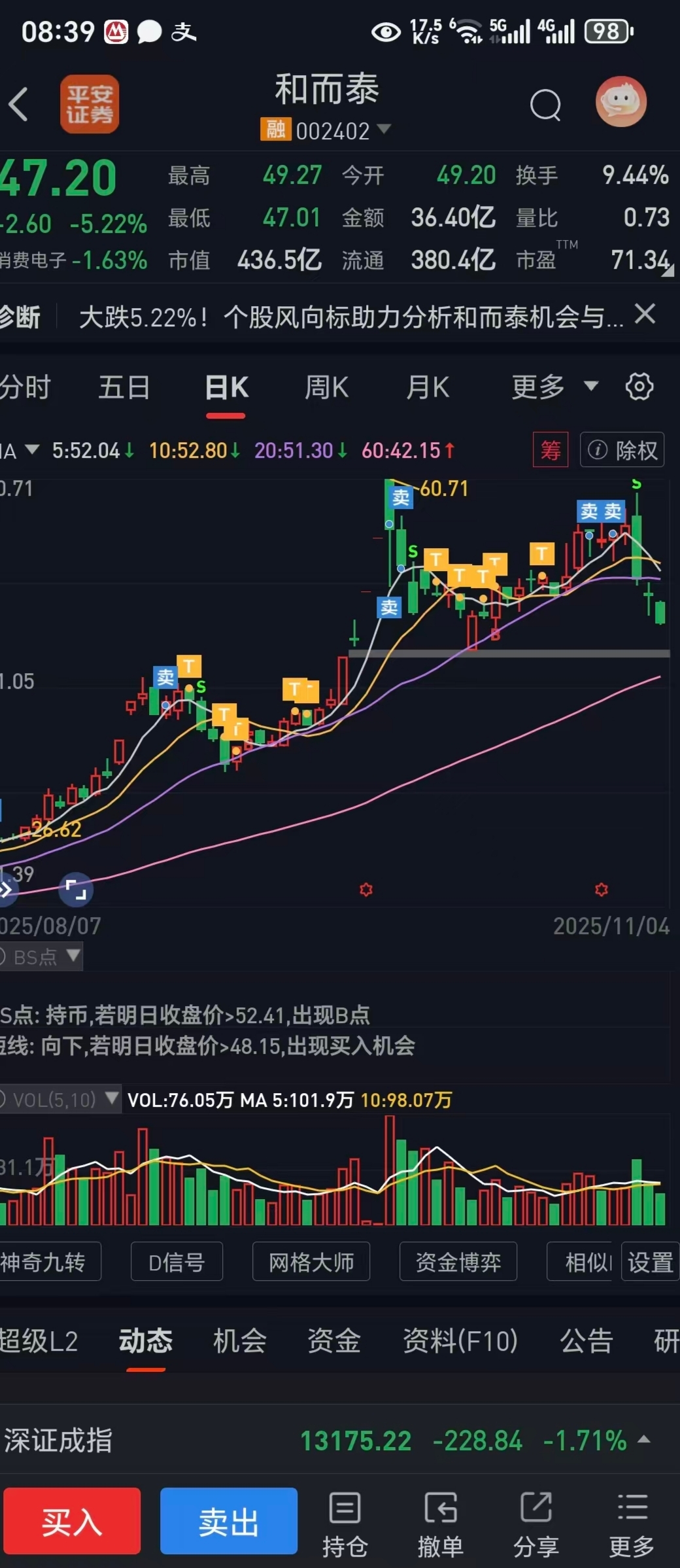 $和而泰(SZ002402)$ 交易就是一种等待,等卖点和买点