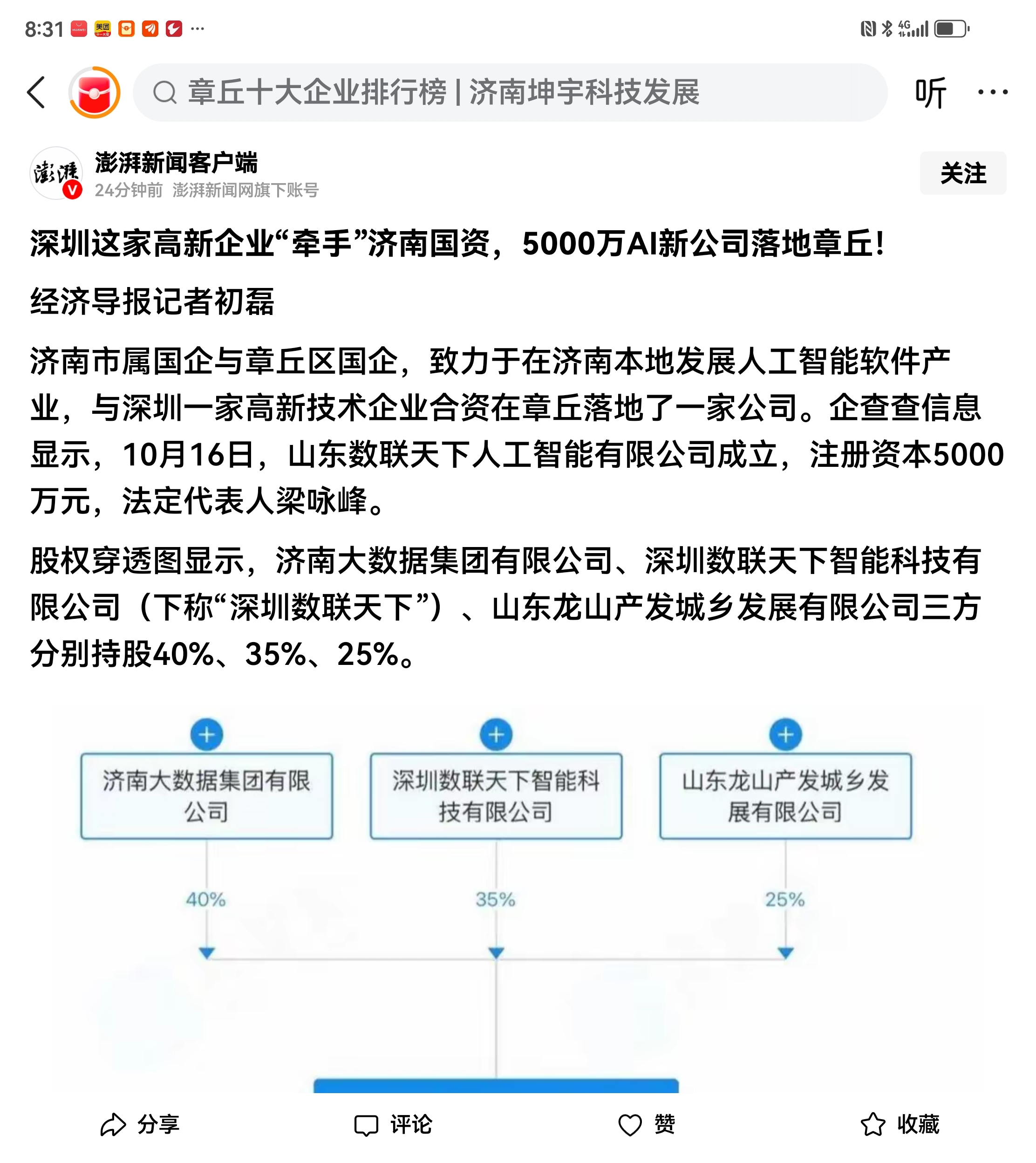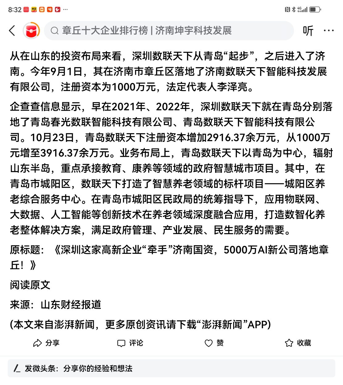 今天澎湃新闻:和而泰5000万在山东成立AI公司!