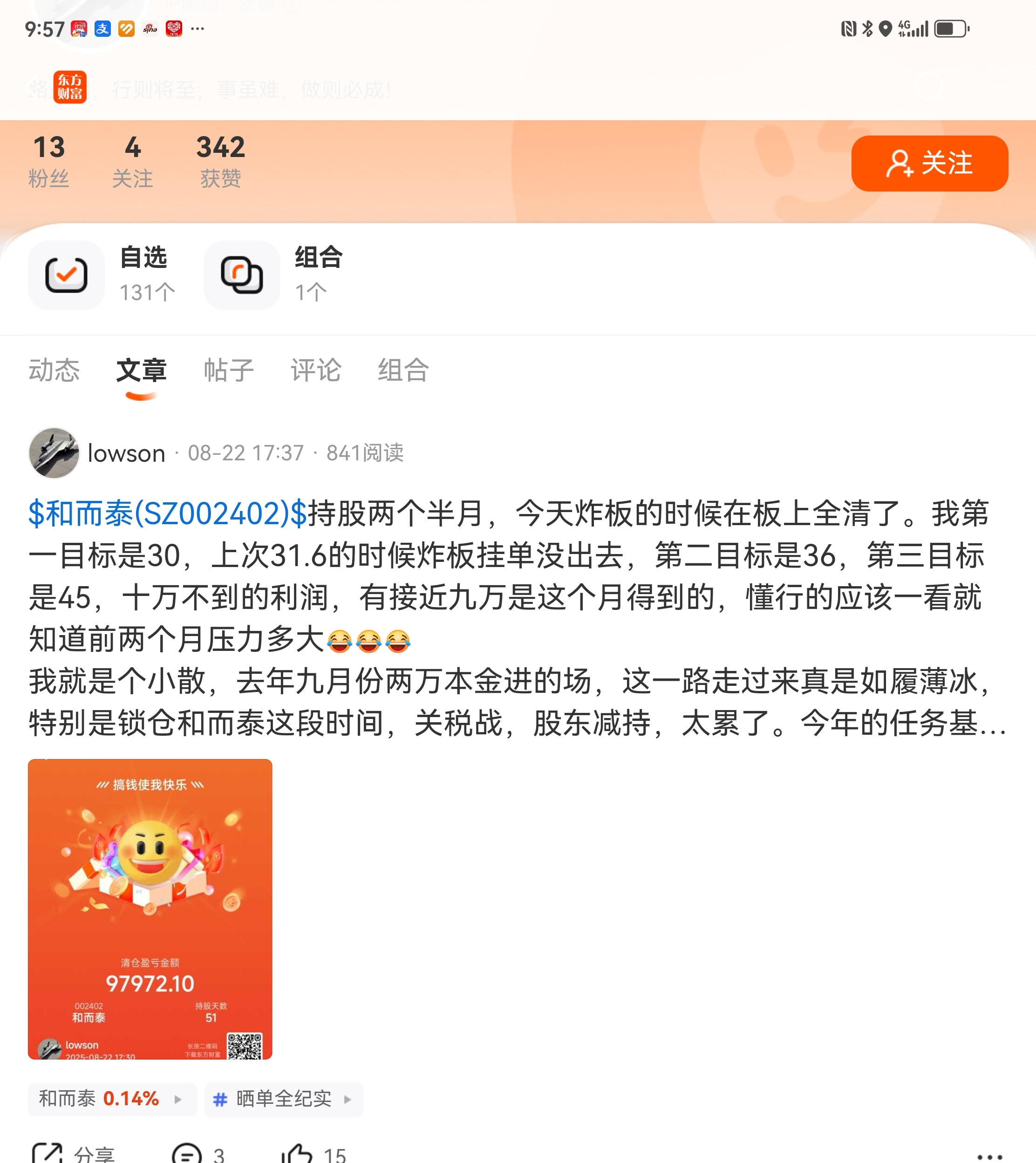 $和而泰(SZ002402)$ Low:又是一个空仓的唱空!