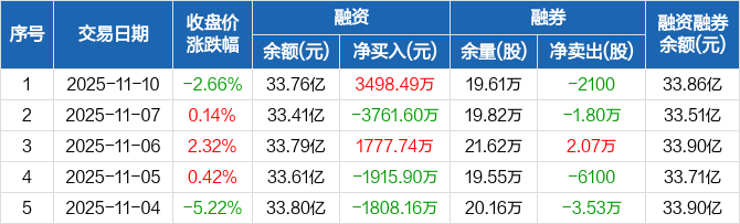 和而泰:融资净买入3498.49万元,融资余额33.76亿元(11-10)