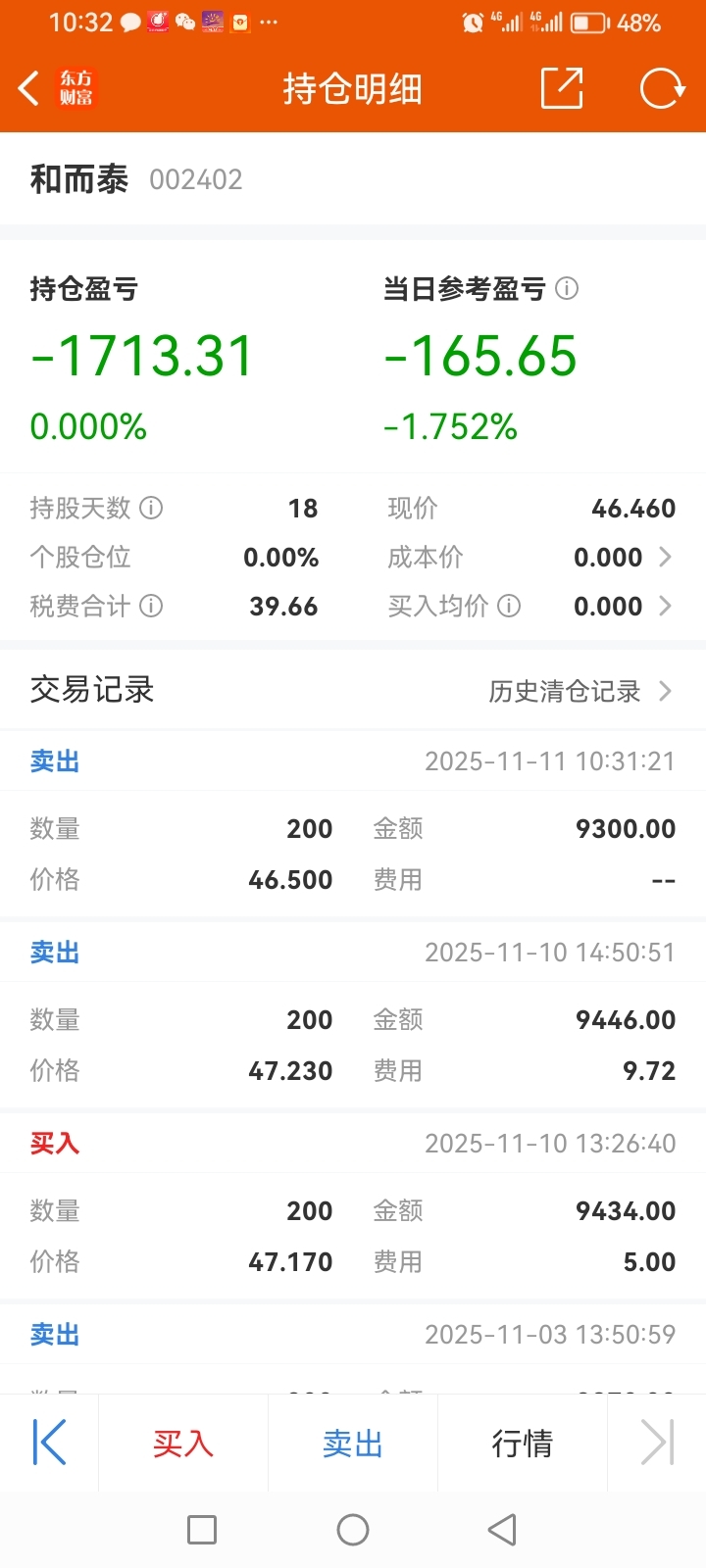 $和而泰(SZ002402)$ 割肉走了55.3进买了2首,亏1800走了。以后不追高了。