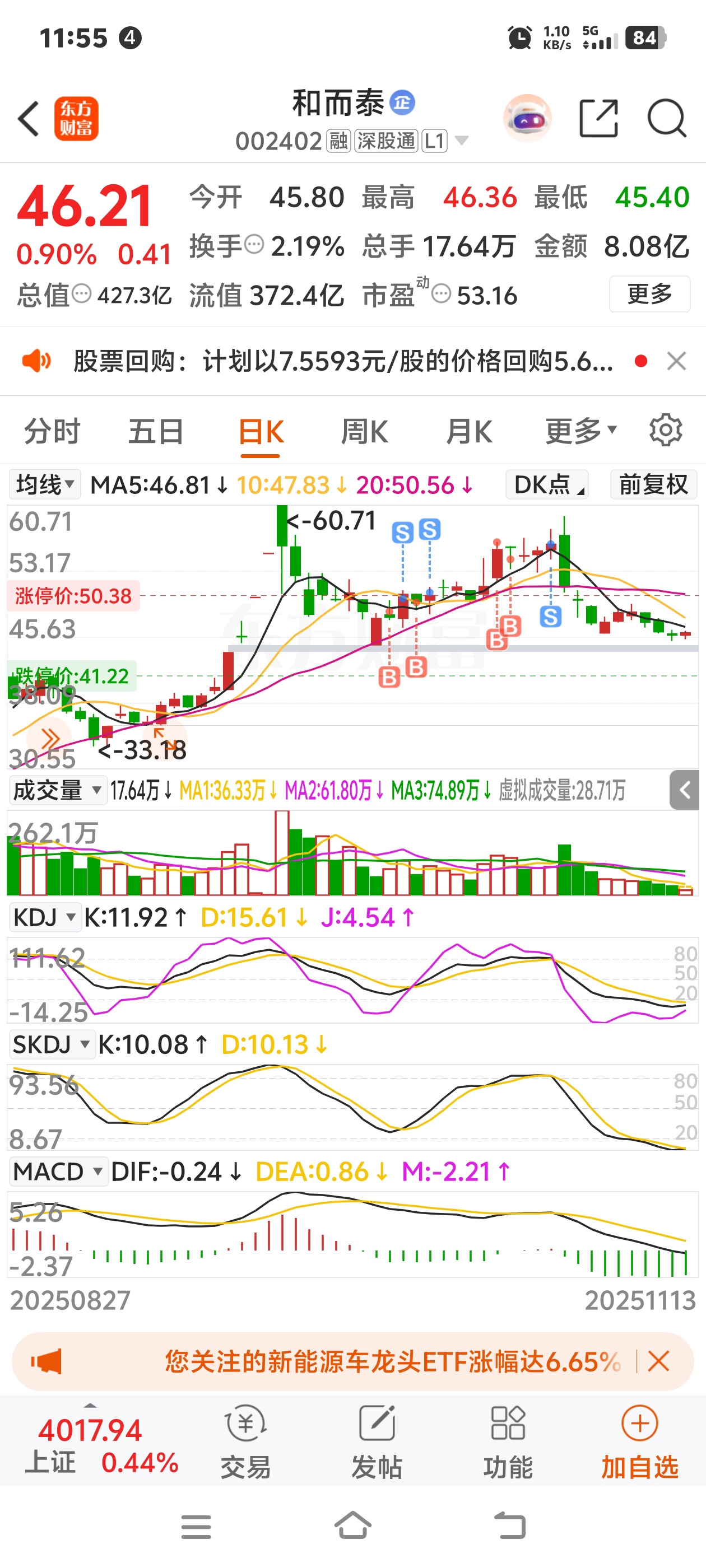 $和而泰(SZ002402)$ 回调了一些天,下个星期一准备进仓