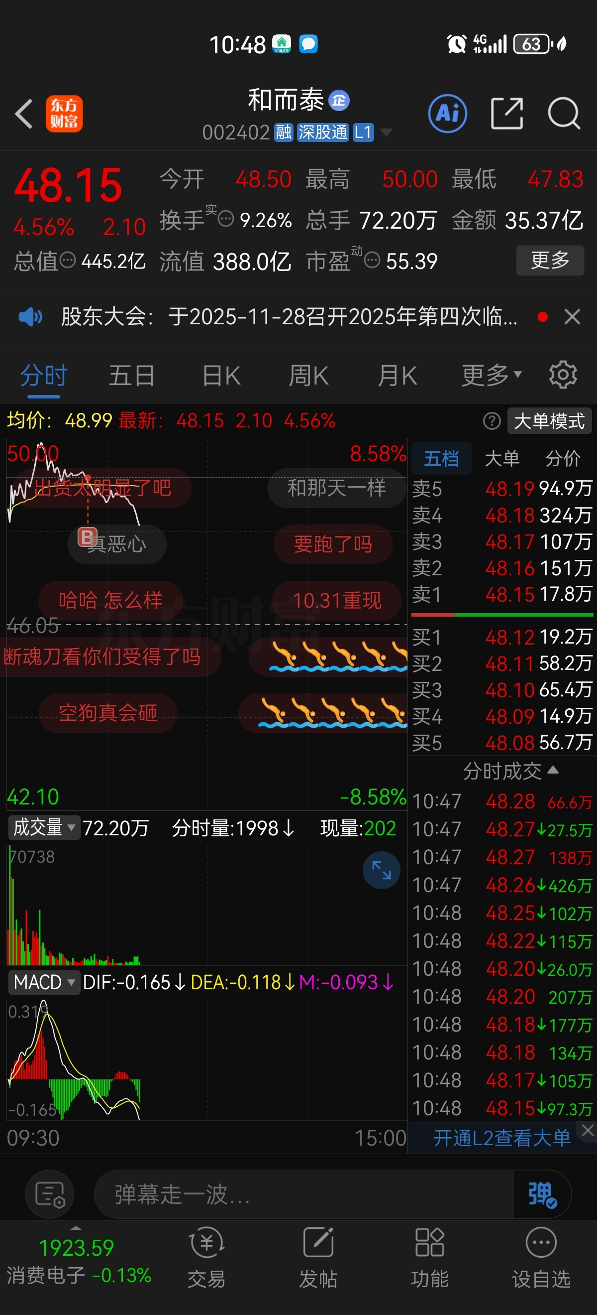 $和而泰(SZ002402)$ 哈哈,吃面了