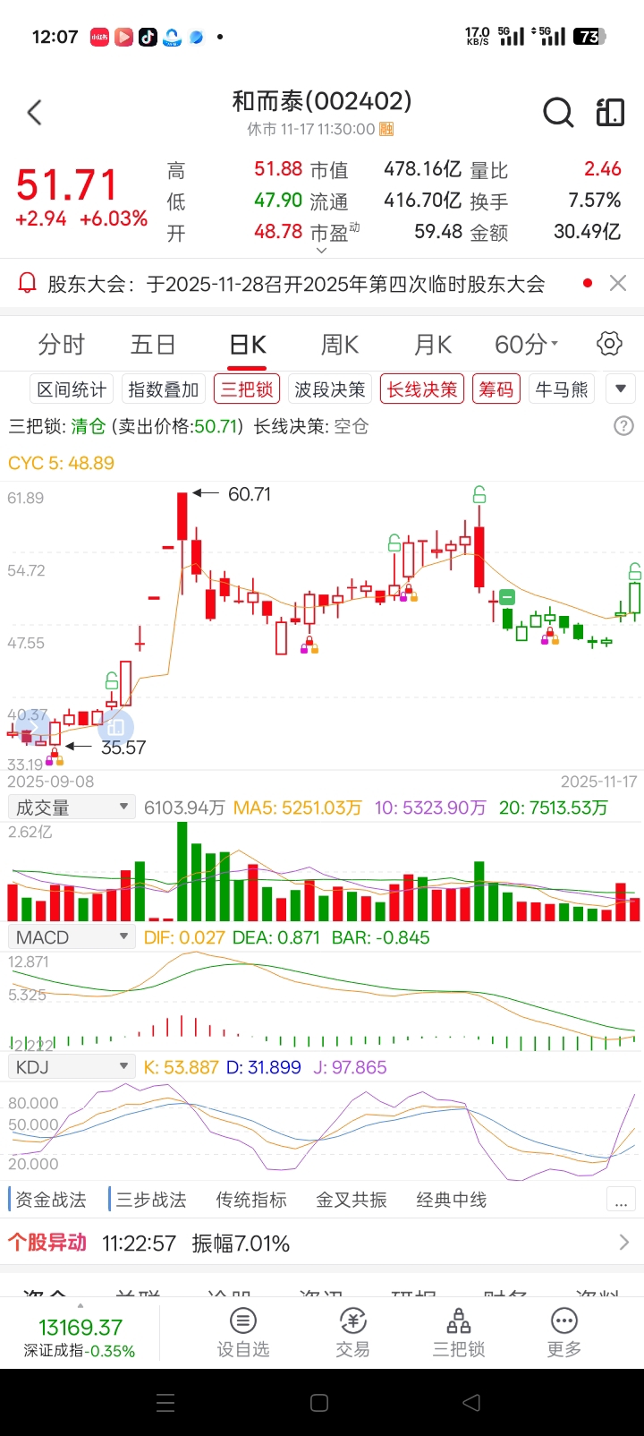 $和而泰(SZ002402)$ 高手指导一下,指南针软件提示50.71清仓。怎么操作。?谢谢指导