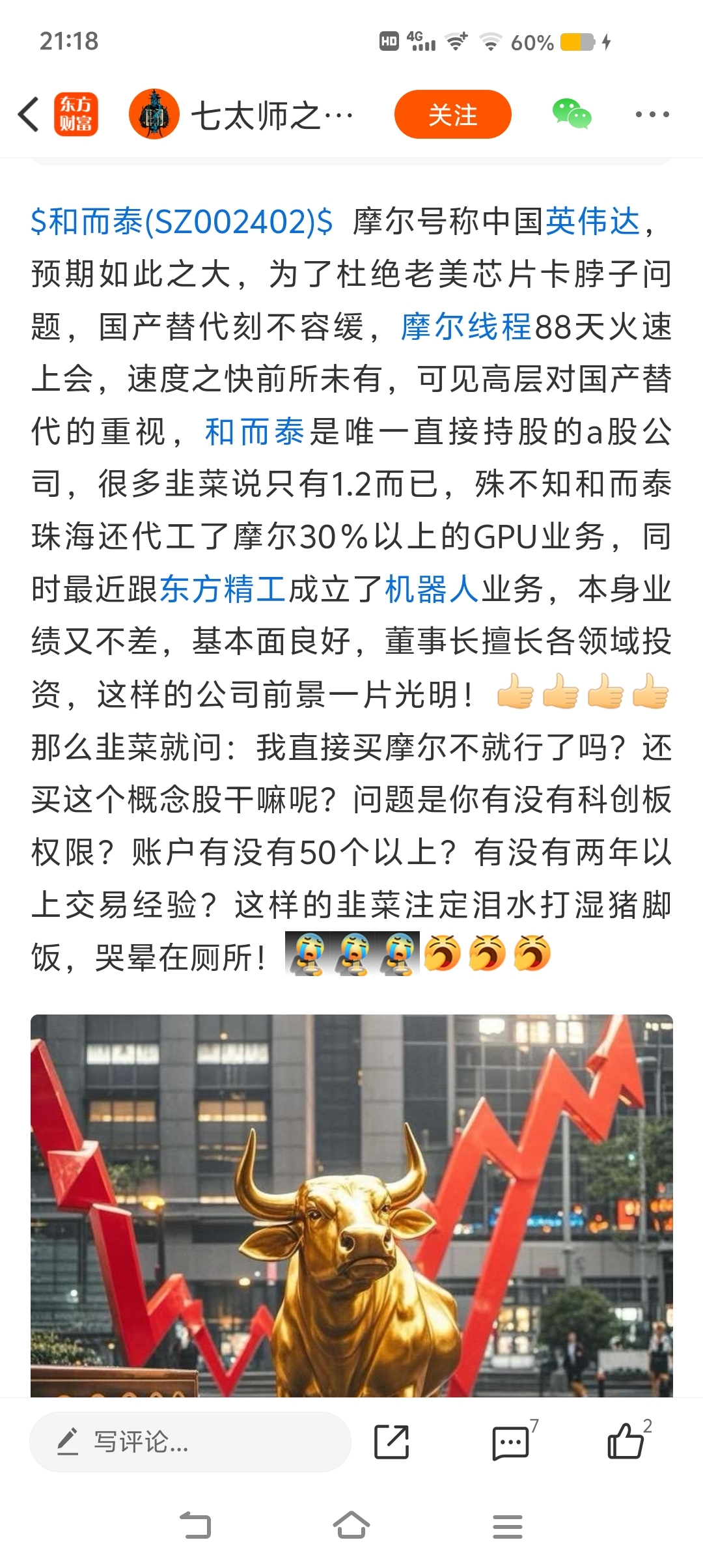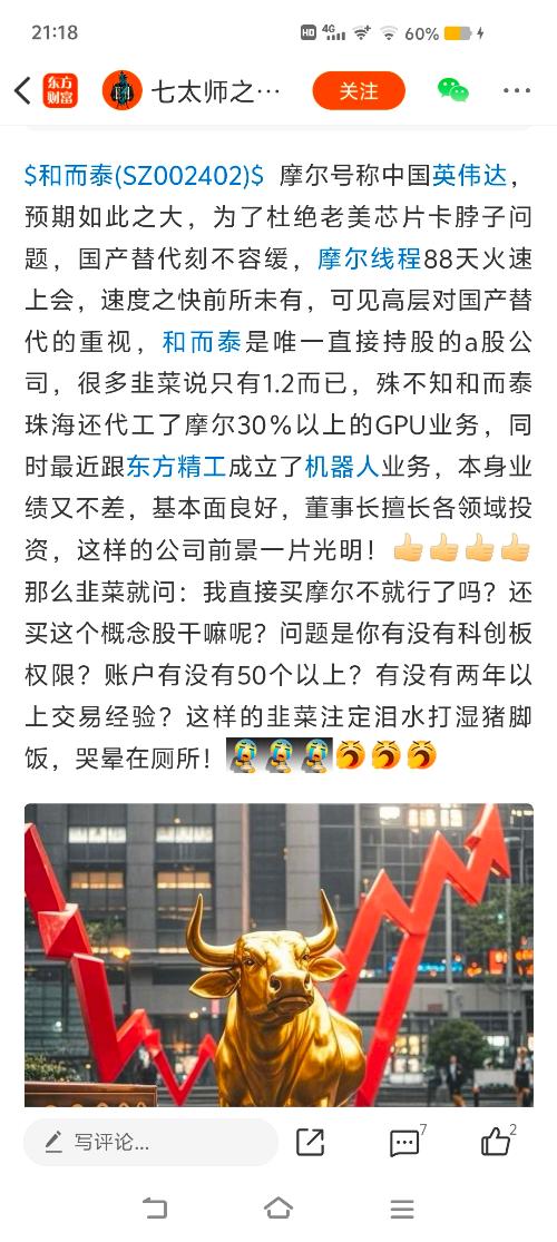 关键是承接百分之30业务说的非常仔细,不像假的,如果是真的,可能涉嫌隐瞒财务数据嫌疑,那摩尔线程的亏损可能就是假的,就该被证监会暂停上市,甚至退市,成为全球400年股市上市就退市的超级笑话,只因为和而泰董秘为了配合主力打压股价把以前的利好消息变成不实消息,我这张图是目前可查最早信息出处,这个发布者可能就是和而泰内部员工或者是合作方人员