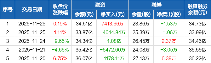 和而泰:融资净买入7413.66万元,融资余额34.61亿元(11-26)