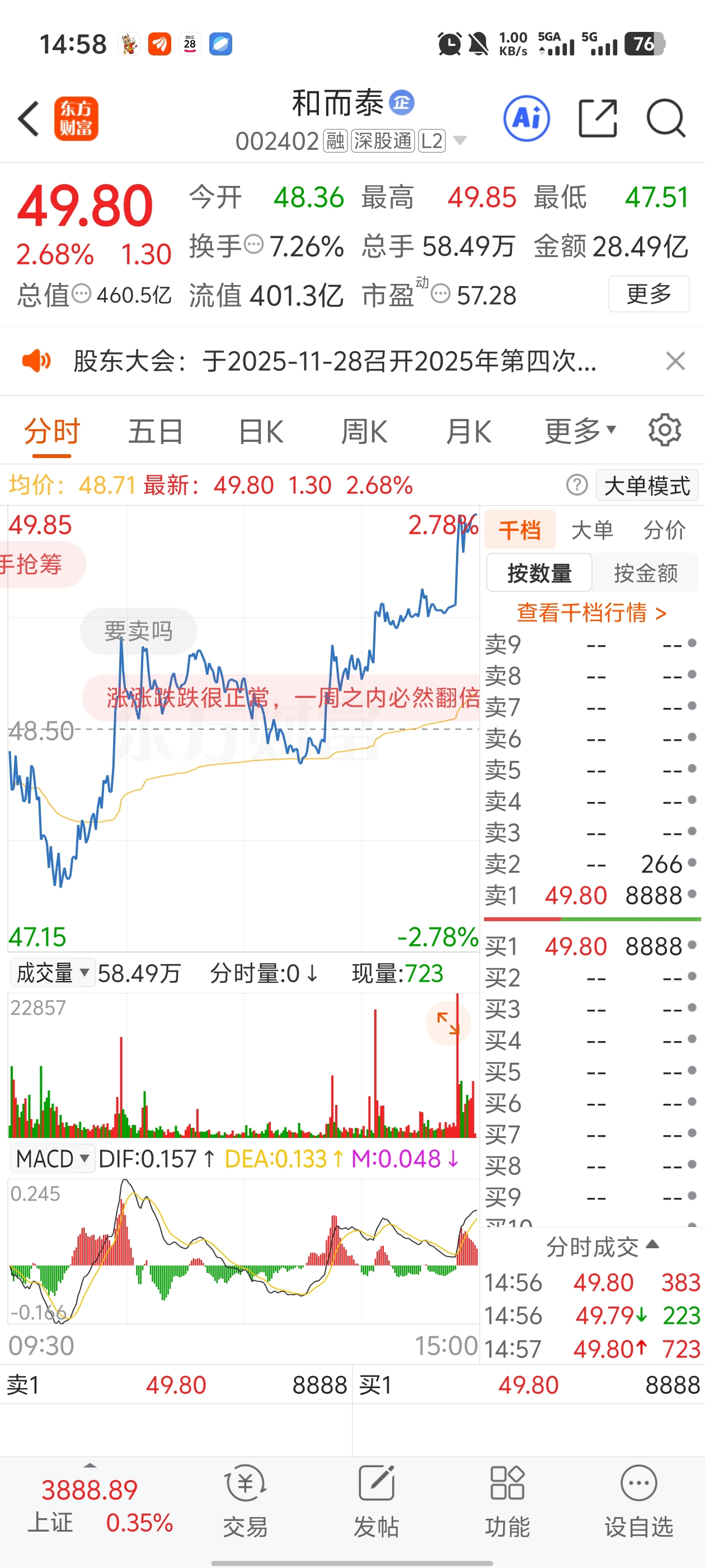 $和而泰(SZ002402)$ 8888手,下周发发发发