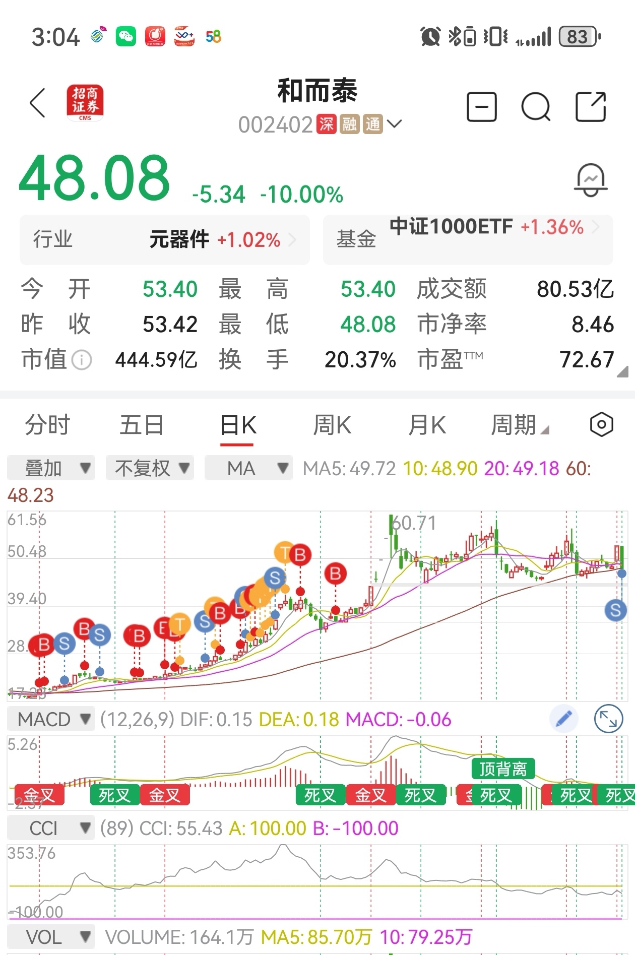 $和而泰(SZ002402)$ 虽熬了2月,利润回撤了,今天走的贼恶心,但还是感谢老泰,希望车上的早日回头