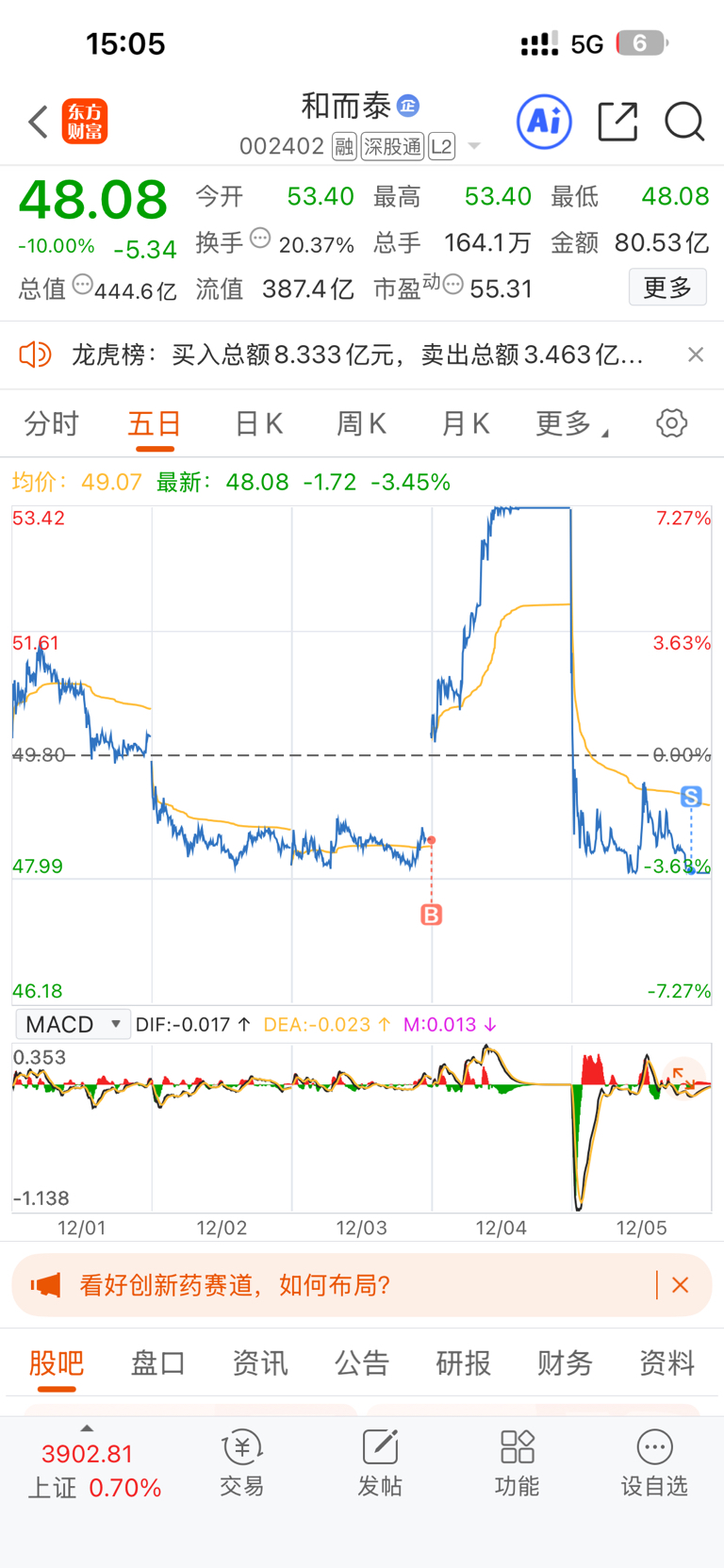 本想今天有个板就跑,结果是个地板,还卖了三花智控和航天发展来支持,,挨了四次断头