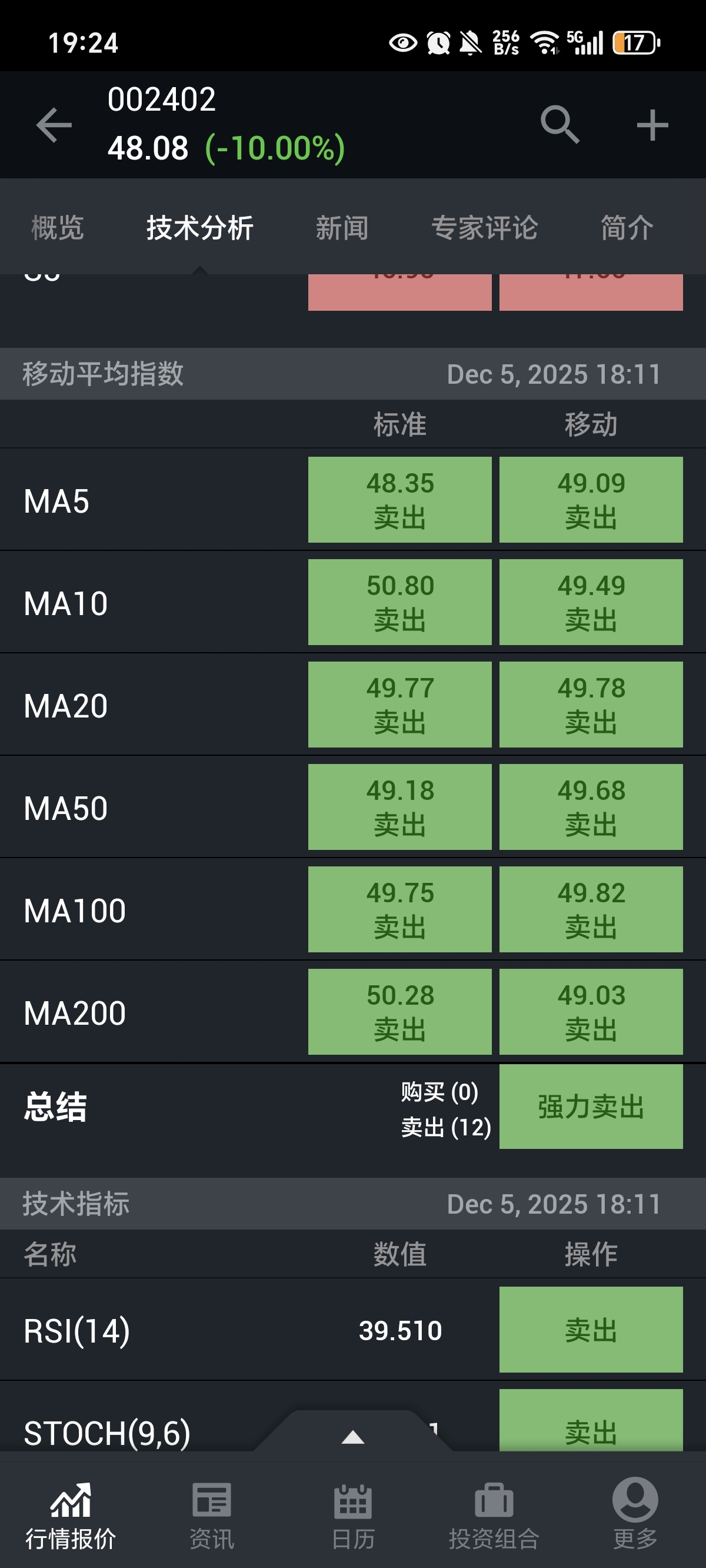 强力卖出,看空!
