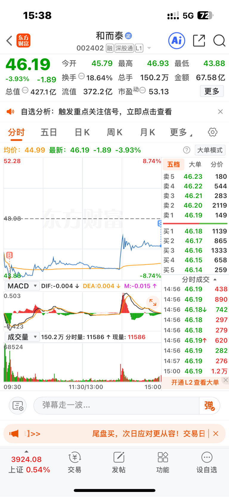 $和而泰(SZ002402)$ T道什么时候回本哦,别哪天T铁板上了
