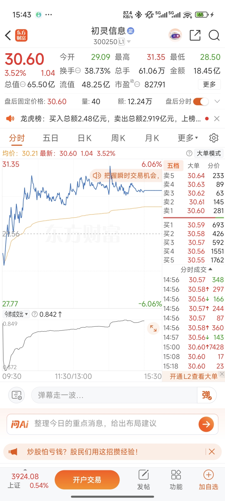 $和而泰(SZ002402)$ 垃圾之王,看看人家初灵,周四20%,周五也就回去一半,今天还涨3%