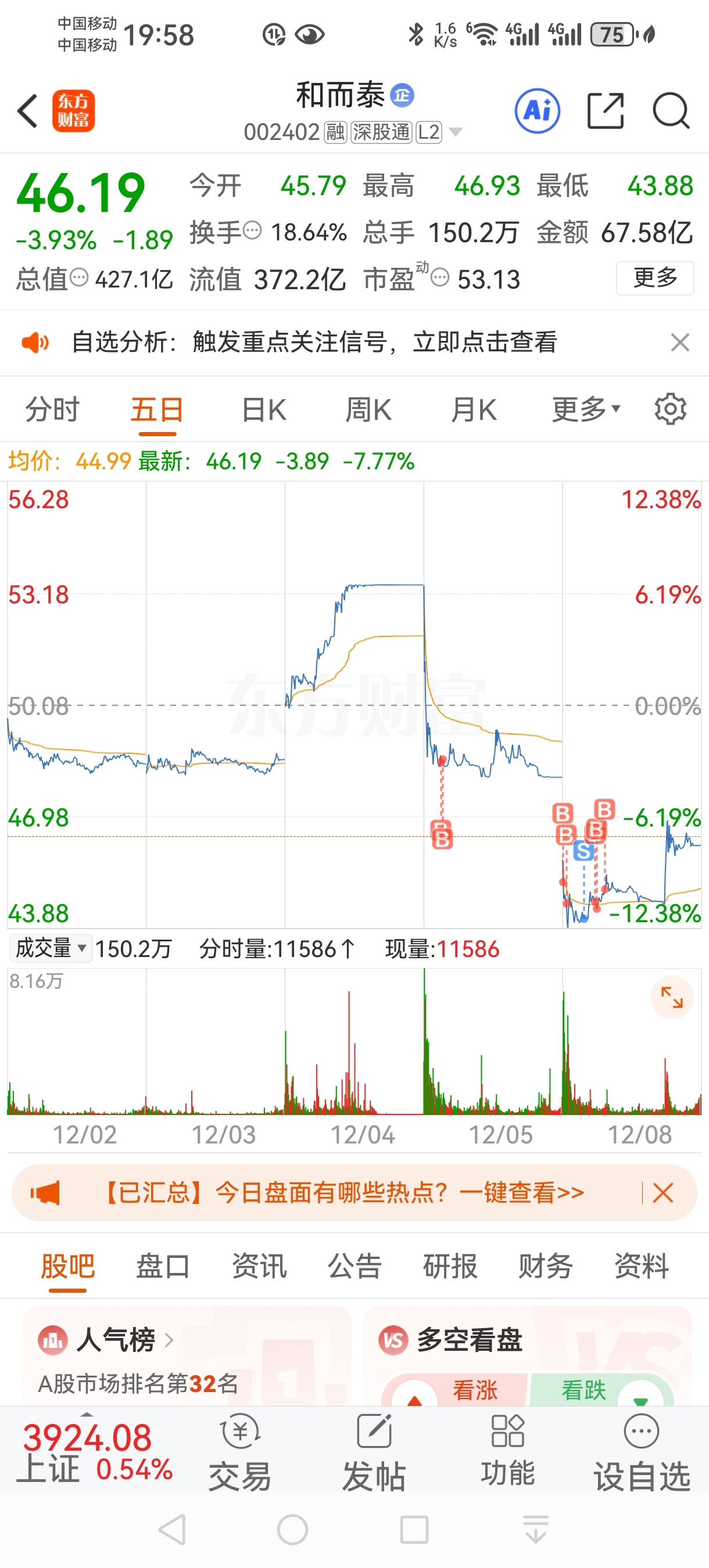$和而泰(SZ002402)$ 明天开门让我先走,