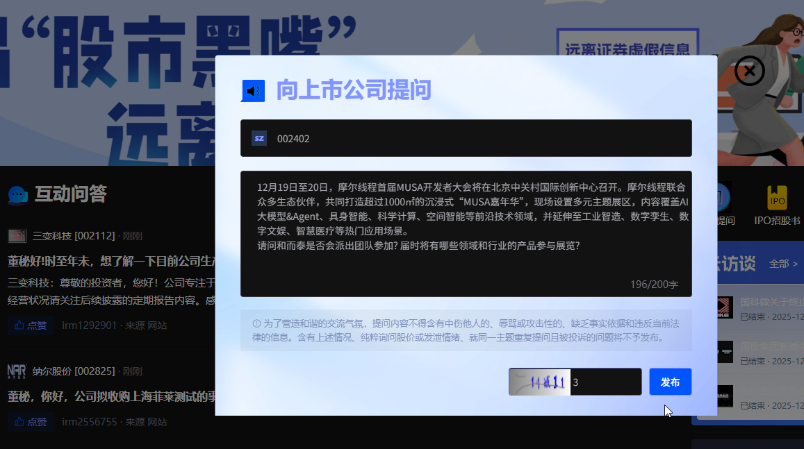 希望和而泰不要错过这个和摩尔线程互动的机会, 尽快落地双方业务合作